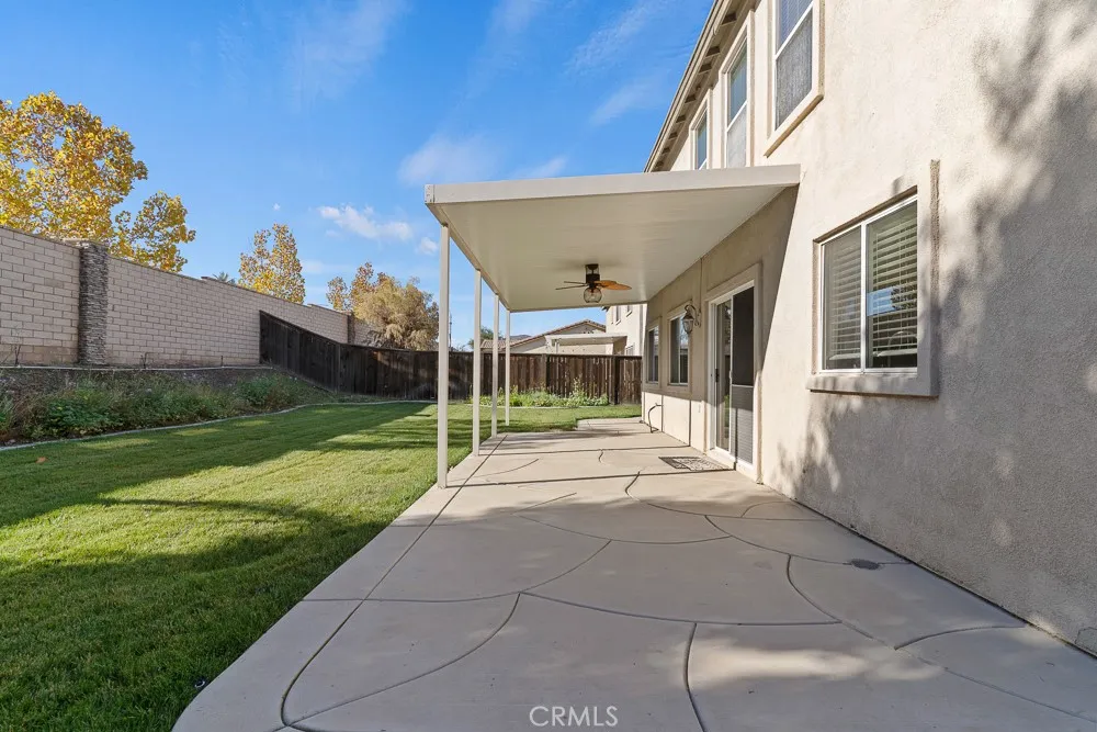Beautiful 5-Bedroom Home in Desirable Canyon Heights Community. Welcome to this beautifully maintained two-story home, perfectly situated on a quiet cul-de-sac in the highly sought-after Canyon Heights neighborhood of Menifee. Featuring 5 bedrooms—including one conveniently located on the main level 3 full bathrooms, and an upstairs loft, this spacious home offers 2,795 sq ft of thoughtfully designed living space on a generous 7,405 sq ft lot—ideal for both relaxing and entertaining. Step inside to discover new laminate flooring throughout, including in all bedrooms, offering a clean and modern aesthetic. The heart of the home is the open-concept kitchen, showcasing a large island with granite countertops, abundant cabinetry, and plenty of prep space for the home chef. Neutral paint tones and ample natural light enhance the home’s bright, airy, and inviting ambiance. Just off the entryway, you'll find a versatile flex space—perfect for a home office, guest room, or whatever your lifestyle demands. The landscaped front yard boosts curb appeal, while the three-car garage provides ample room for parking, storage, or a workshop. Located in a family-friendly neighborhood within walking distance to Quail Valley Elementary School, this move-in ready home is ideal for growing families. Canyon Heights is a well-established community of just 394 homes, known for its low property taxes and peaceful setting. Don’t miss your opportunity to own this exceptional home in one of Menifee’s most desirable neighborhoods!