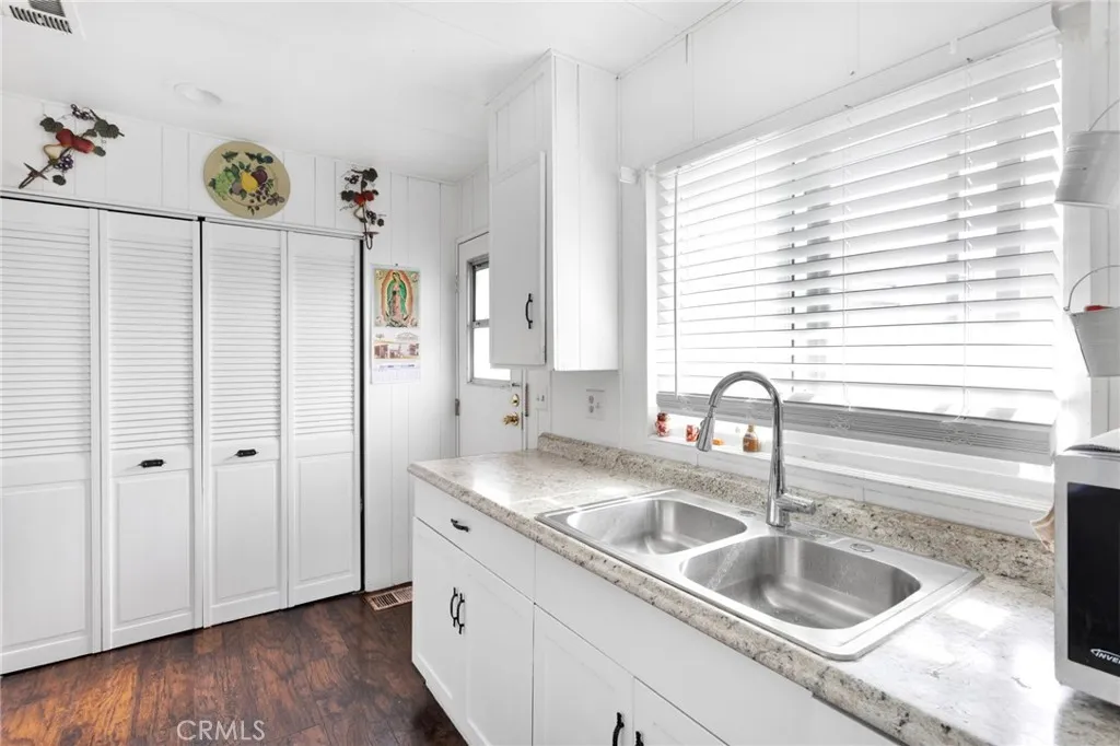 Welcome to this charming and well-maintained 800 sq ft mobile home located in the desirable Rancho Brea Park. This inviting 2-bedroom, 2-bathroom home offers a functional layout. Inside, you’ll find a kitchen that opens to the living room. The home also features indoor laundry and wood flooring throughout, adding both convenience and style. This home has seen several recent upgrades, giving you peace of mind for years to come. The water heater, air conditioning unit, and windows were all replaced approximately two years ago, and the roof was replaced three years ago, making this home truly move-in ready. Outside, enjoy a nice size yard featuring low-maintenance turf and tile flooring, ideal for outdoor gatherings or simply relaxing. The property offers ample parking for up to 3–4 vehicles. Rancho Brea Park provides fantastic community amenities, including a clubhouse, inground swimming pool, and jacuzzi. This is a wonderful opportunity to own a beautifully upgraded home in a well-maintained park—don’t miss it!