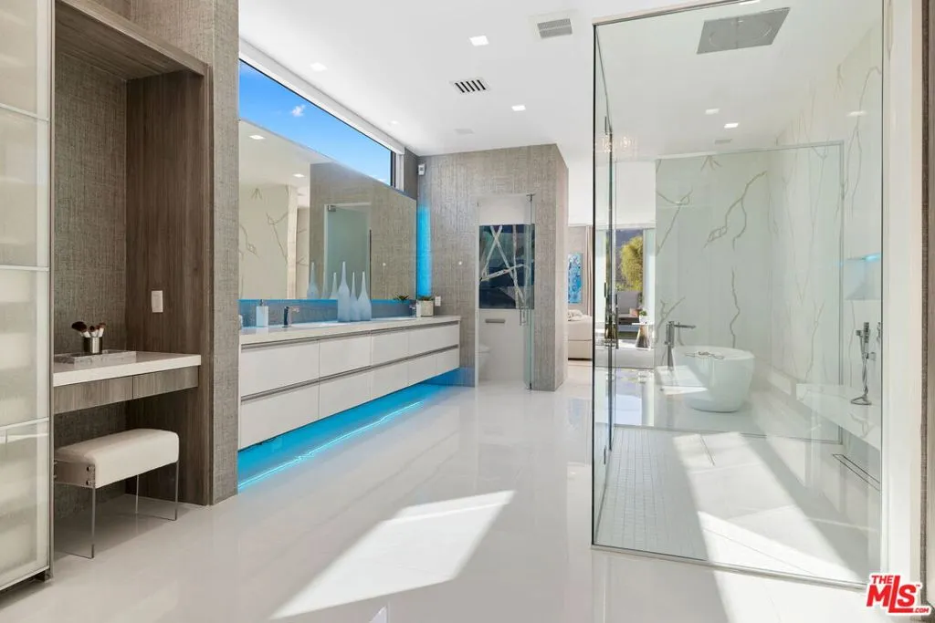 A striking contemporary estate located within the highly exclusive Quarry at La Quinta offers an elevated approach to desert luxury, blending cutting-edge design with a focus on wellness and innovation. Designed by renowned architect Brian Foster with landscaping by Foxterra, the 3,000+ square foot estate features full Josh AI smart home integration for seamless control of lighting, climate, security, and entertainment. Designed to accommodate both everyday comfort and elevated entertaining, the expansive open floor plan is framed by walls of sliding glass that dissolve the boundary between interior and exterior spaces. The home's private cinema is a true centerpiece, a Sony ultra-high-definition 4K projection system. With more than $1.2 million invested in bespoke audio-visual enhancements, the theater delivers an immersive sound and visual experience that rivals and exceeds elite commercial venues. Outdoor spaces are equally striking, with a resort-style front yard pool and a massive 156" outdoor TV ideal for entertaining under the desert sky. The sleek modern kitchen offers high-end appliances, custom cabinetry, and a spacious island. Eco-conscious features include solar panels, circadian lighting, and whole-home water filtration. Located within the exclusive Quarry community home to a Tom Fazio designed private golf course, clubhouse, and tennis courts. Move-in-ready home offers unmatched privacy, luxury, and proximity to La Quinta dining, El Paseo shopping, and Indian Wells tennis.
