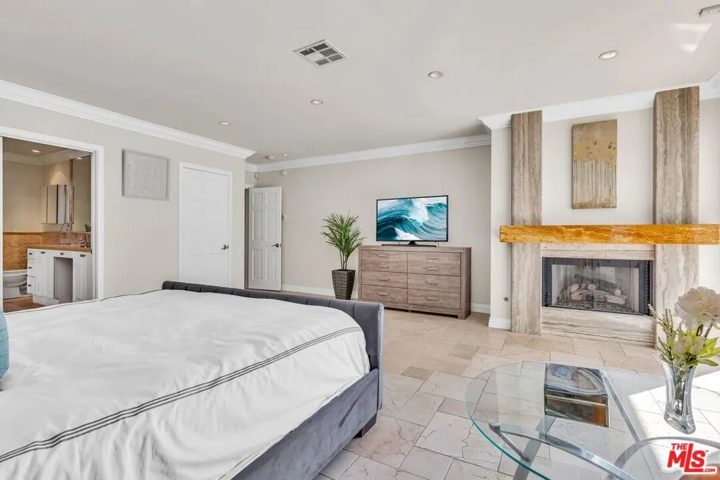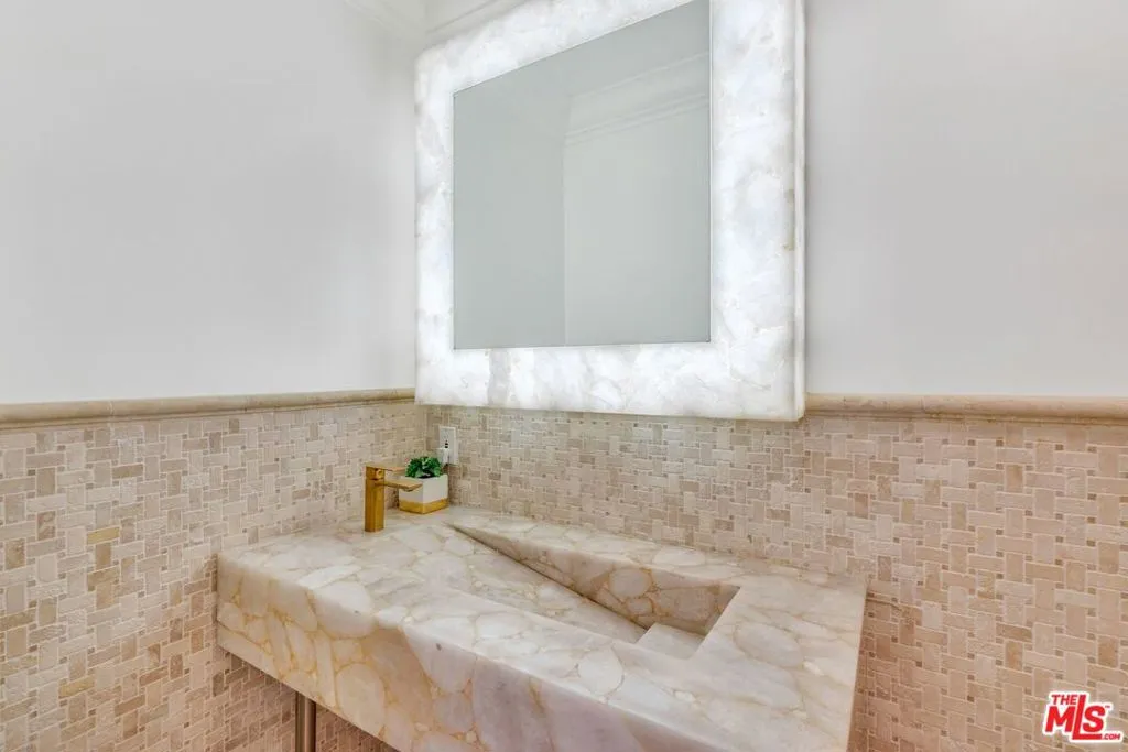 FURNISHED/UNFURNISHED. VIEWS!!! 4 BEDS/3,5 BATHS PLUS GYM/OFFICE. Tastefully remodeled with HIGH-END LUXURIOUS designer finishes. This SINGLE LEVEL marvelous Mid-Century home is an absolute STUNNER. Boasting PANORAMIC CANYON AND MOUNTAIN VIEWS from ALL the living spaces and bedrooms, this sensational home will take your breath away the moment you step inside. FLOOR-TO-CEILING picture windows, glass doors and abundance of natural light throughout instantly provide the feeling of an open and airy elegance. Featuring an OPEN-CONCEPT, WELL-DESIGNED FLOOR PLAN, this home has a great indoor/outdoor flow. You'll love to host guests and loved ones in the backyard complete with a breathtaking ENORMOUS DECK, a resort-like sparkling pool (featuring lustrous and dazzling glass tiles reminiscent of rainbow-like play of colors), spa, and serene waterfalls. Additional features include one-of-a-kind RAINFOREST MARBLE, ONYX, TRAVERTINE, CEASERSTONE, GRANITE FINISHES, state-of-the-art APPLIANCES, 2 car garage PLUS a circular driveway. Located on a quiet street with no neighbors across, next to the guarded, upscale Beverly Park community. WELCOME HOME!