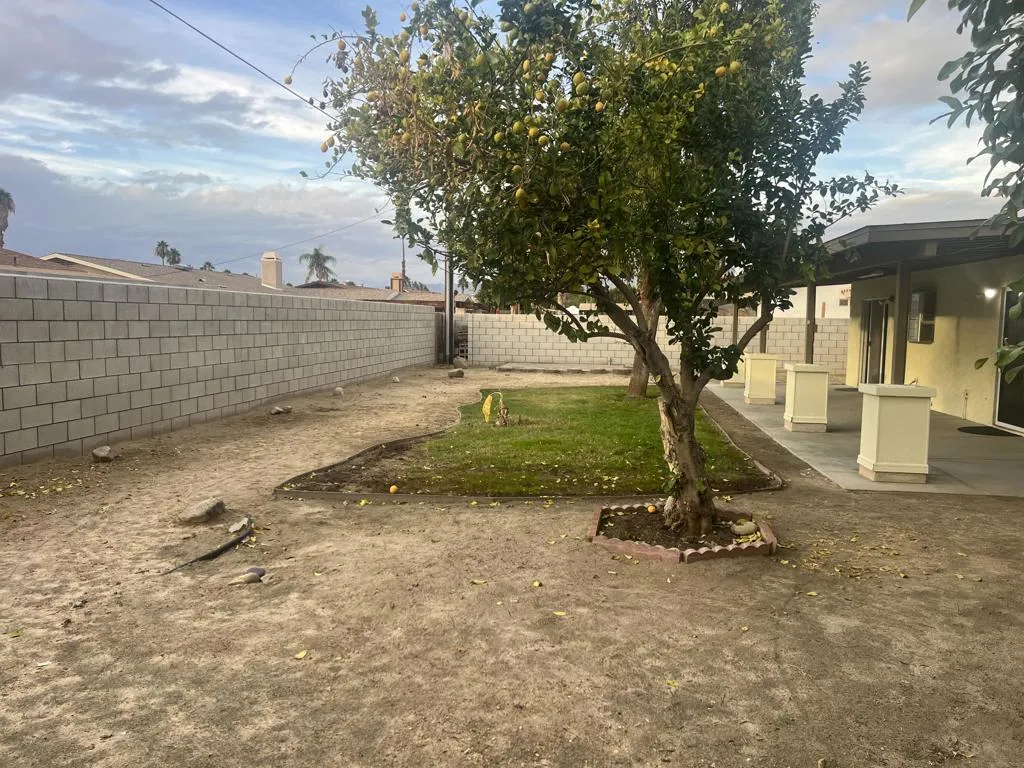 Home in the City of Bermuda Dunes, on the market for the first time since 2003! Built in 1985, this home offers 3 bedrooms and 2 bathrooms, a living room, and a family room with a fireplace, as well as a dining area. The kitchen was remodeled a few years ago. The home features laminate wood flooring and tile throughout, fresh interior paint, and a spacious laundry room with washer and dryer hookups that could easily be converted into a fourth bedroom.Additional highlights include an attached 2-car garage and a covered patio with electrical outlets. The back and side yards are perfect for family gatherings and entertaining. Enjoy a variety of fruit trees, including guava, banana, mango, and yellow lemon.Conveniently located near schools, shopping centers, the I-10 freeway, festivals, and much more.
