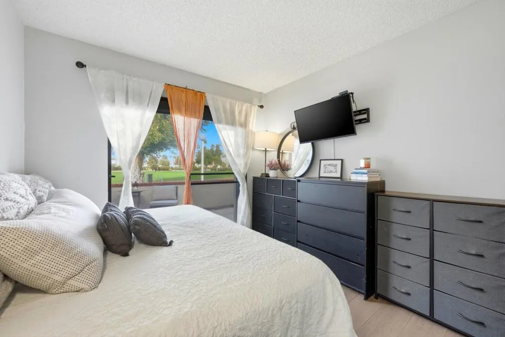 Beautiful partially updated condo ideally located in Mountain Shadows on the golf course is now available. Enjoy relaxing and serene views of Tahquitz Creek Golf Resort Legend Course from this 3 bedroom, 2 bathroom condo with carport directly behind the unit next to the kitchen. Two bedrooms are upstairs along with a full bathroom. There is one bedroom downstairs, along with a living room, kitchen with dining area, laundry area, and a bathroom with a shower. Mountain Shadows has nice amenities including a community pool, tennis courts, and several green belts. Centrally located, this condo is close to everything Palm Springs has to offer and is located on Fee land so you own the land. The HOA dues are currently $500. Call today for your appointment to see this outstanding condo in a great location on a golf course in South Palm Springs. This community allows Short-Term Rentals.