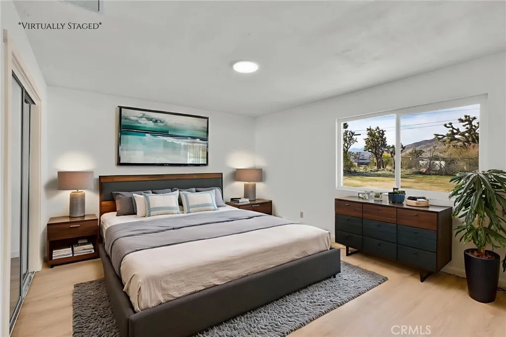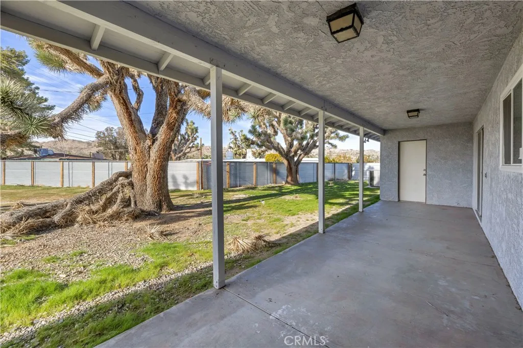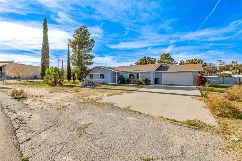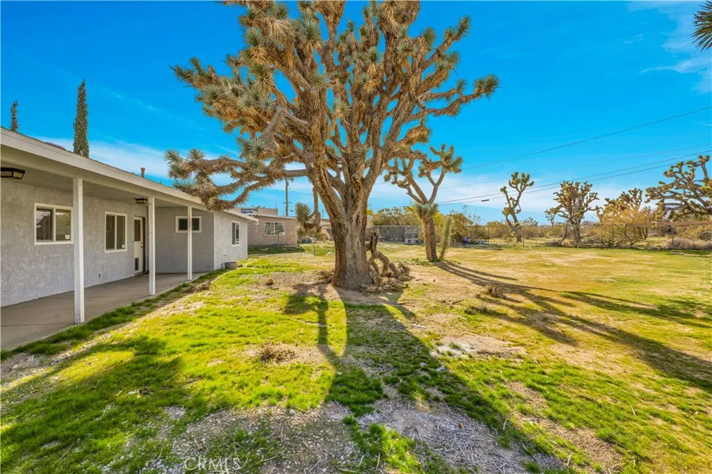 This beautifully remodeled 3-bedroom, 2-bathroom home offers spacious living and stylish updates, all in a highly convenient location just minutes from restaurants, shopping centers, and all that Yucca Valley has to offer. As you approach the property, you’ll love the curb appeal created by the mature trees, a large concrete driveway, and an attached two-car garage. There is also a convenient drive-thru gate leading to the fully fenced backyard—perfect for RVs, trailers, or additional parking. Step inside to find a light, bright, and airy open floor plan with fresh interior paint, new luxury vinyl plank flooring throughout, NEW WINDOWS, and recessed lighting. The large living room and generous dining area provide comfortable and versatile spaces for relaxing and entertaining. The kitchen is completely new, featuring brand-new cabinetry, stunning quartz countertops, stainless steel appliances, and a stainless steel sink. The layout is functional with plenty of storage and counter space to meet your everyday needs. The primary bedroom is spacious and includes two closets—one of which is a walk-in—as well as a fully remodeled ensuite bathroom. The ensuite features modern finishes, a large walk-in tile shower, glass enclosure, rain showerhead with wand, and a stylish dual-sink vanity. The additional two bedrooms are also generously sized and located near the remodeled guest bathroom, which includes a shower-tub combo and upgraded vanity. Additional highlights include an indoor laundry room with added storage, a two-car garage, a large covered back patio, and a flat, usable backyard that’s completely fenced for privacy. Homes of this size and condition in this central location do not last long. Call today to schedule your private showing!