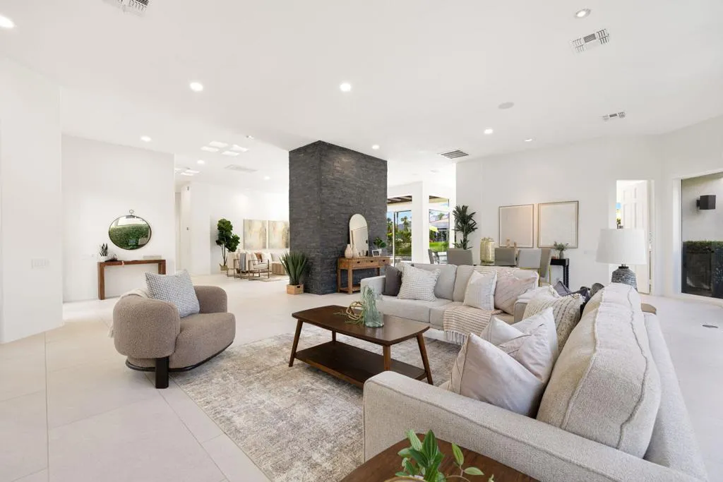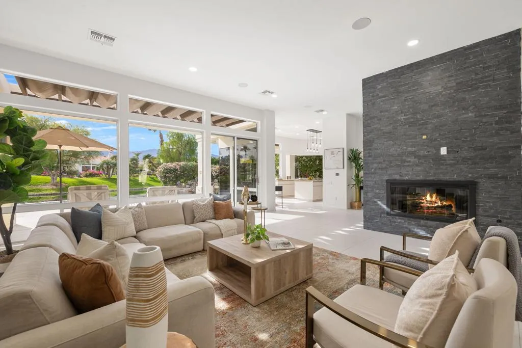 PRICE IMPROVEMENT and an opportunity to assume a loan at 2.8% This home is set on an expansive, private lot within the gates of prestigious Desert Horizons Country Club, beautifully updated, offering refined desert living with gorgeous south-facing mountain, waterfall, and lake views. Spanning over 3,600 square feet, this 4-bedroom, 5-bath single-level home features an open-concept layout designed for both comfortable daily living and effortless entertaining.Recent updates include fresh interior paint throughout, enhancing the home's light, bright, and inviting feel. The spacious living areas are complemented by multiple fireplaces, generous ceiling heights, and seamless indoor-outdoor flow. The gourmet kitchen offers ample cabinetry, granite countertops, and stainless steel appliances, opening naturally to the main living and dining spaces.The primary suite serves as a private retreat with spa-inspired bathroom and walk-in closet, while each guest bedroom offers en-suite accommodations for comfort and privacy. Step outside to a tranquil backyard oasis featuring a private pool and spa, expansive patio areas, and captivating views of the lake, waterfall, and surrounding mountains--ideal for entertaining or relaxing under the desert sky.Residents enjoy access to the newly completed Desert Horizons clubhouse, featuring a full-service restaurant and bar, an 8,000-square-foot fitness and wellness center, pro shop, and a state-of-the-art courts pavilion with pickleball and tennis courts. Located in the City of Indian Wells, homeowners also benefit from exclusive resident privileges, including discounted golf, dining, spa, and fitness amenities.This is a rare opportunity to enjoy space, privacy, views, and lifestyle in one of Indian Wells' most sought-after communities.