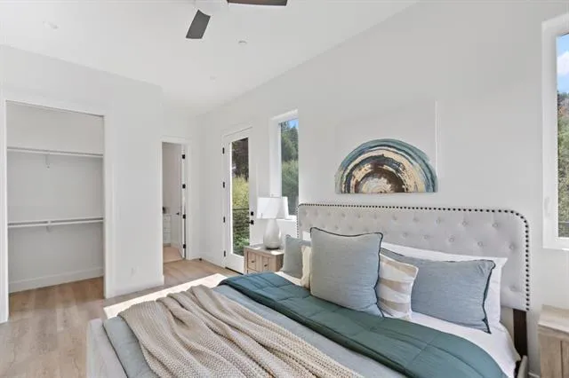 This 3 bedroom, 2 bath turnkey newly constructed home is truly one of a kind. Built in 2024 and nestled in the redwoods just off Big Basin Way in Boulder Creek. The house is bathed in natural light, enhanced by skylights and large windows. It features an immaculate open-concept layout, vaulted ceilings, and generous square footage. The chefs kitchen has recessed lighting, stainless steel appliances, and an island for entertaining. The primary bedroom has an en suite bathroom and a private deck to take in those beautiful tree-lined views. There's also a bonus room, perfect for a home office or for extra storage. The property is solar powered and humidity controlled. The lot size is nearly 10,000 square feet with a two-car garage. There is plenty of space to enjoy tranquil mountain living.