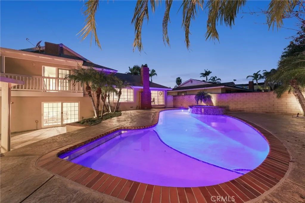Turnkey tri-level pool home offering the best of Southern California living. This beautifully updated 3-bedroom, 2.5-bath residence blends comfort, flexibility, and an exceptional indoor-outdoor lifestyle. The lower level features a spacious family room with custom built-ins, a convenient powder room, and direct access to the backyard. With its layout and privacy, this space offers excellent versatility—ideal as in-law quarters, a private guest suite, additional bedroom, or a game/media room. A short flight of stairs leads to the main living level, where an upgraded eat-in kitchen showcases stainless steel appliances, granite countertops, pull-out shelving, breakfast bar seating, and ample storage. The adjacent living and dining areas feature upgraded flooring, custom plantation shutters, a cozy fireplace, and newer sliding doors that open to the backyard. Upstairs are two secondary bedrooms, a full guest bath, and a private primary suite complete with a walk-in closet, balcony overlooking the backyard oasis, and a completely remodeled primary bathroom with a fresh, modern design. Step outside to an entertainer’s dream backyard, highlighted by a fully remodeled pool with a brand-new spa and tanning/Baja shelf, stamped concrete decking, reflective glass fire pit, and a custom cabana with granite bar, sink, and generous storage—perfect for year-round gatherings. Conveniently located near shopping, dining, entertainment, and major freeways, this move-in-ready home offers flexibility, style, and the Southern California lifestyle buyers are looking for.