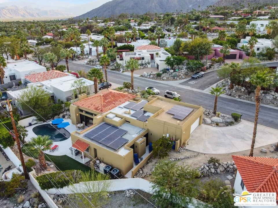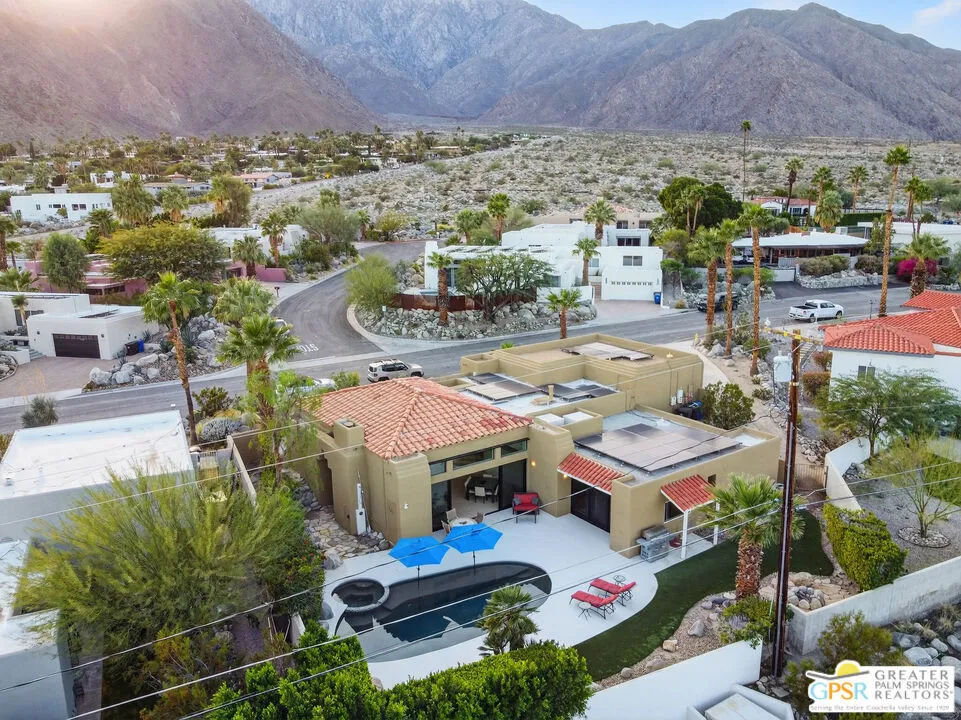 New Price, Just Reduced! Perched in the coveted Chino Canyon / Little Tuscany hillside set in the shadow of Mt. San Jacinto this architecturally distinctive residence (designed by architect Chris Mills) delivers the Palm Springs lifestyle buyers crave: privacy, light, views, and resort-style outdoor living. As you enter, you're welcomed by an open-concept, step-down living area flooded with natural light from expansive windows framing sweeping desert and mountain panoramas. Gather by the fireplace in the spacious living room, then move seamlessly to the dining room for dinners with a view. The newly remodeled chef's kitchen is designed for both everyday ease and entertaining, featuring granite countertops, new stainless steel appliances, and custom cabinetry with plenty of workspace for everything from casual breakfasts to holiday feasts. The home offers four spacious bedrooms, including a serene primary suite with a large walk-in closet, a spa-inspired en-suite bath with dual vanities, soaking tub, and separate shower, and direct access to a private patio perfect for morning sunrises and evening breezes. Two additional bedrooms are thoughtfully placed on the opposite side of the home with a full bath between them for comfort and privacy, while a convenient powder room serves guests. A study/4th bedroom on the main level plus a separate office/hobby or craft space adds flexibility for today's work-from-home lifestyle. Step outside to your private desert oasis: a sparkling pool and spa, multiple patios for lounging and al fresco dining, and a beautifully landscaped yard with desert-friendly plantings that enhance the tranquil ambiance. Enjoy quiet moments on the patio off the primary suite, unwind in the secluded guest patio retreat, or host friends under the stars with dramatic mountain backdrops. With 38 solar panels, you'll also enjoy energy-efficient living in the desert. Hidden away from the bustle, Chino Canyon is an elegant neighborhood known for luxury hillside estates, boulder-strewn natural terrain, and a long-running appreciation for standout architecture near the Palm Springs Aerial Tramway area, and just minutes to boutique shopping, fine dining, world-class golf, hiking trails, and the vibrant Palm Springs arts and entertainment scene. Don't miss your chance to own this exceptional Chino Canyon retreat. Schedule a private tour today and experience the views, privacy, and lifestyle for yourself.
