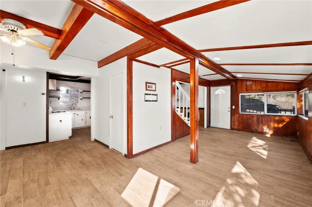 Welcome to your private mountain escape in the heart of Running Springs. This charming 3-bedroom, 2-bath home sits securely behind a full enclosed gate, surrounded by mature pines and crisp alpine air. The inviting living room features a stone fireplace and open layout connecting to the dining area and kitchen, ideal for gatherings and cozy winter nights. Large windows bring in natural light and frame forest views throughout the home. The spacious primary bedroom and two well-sized guest rooms provide comfortable accommodations, whether full-time or seasonal living. Outside, enjoy a fully fenced yard and a deck in the front of the house, relaxing, or stargazing. Conveniently located minutes from Snow Valley, Lake Arrowhead, and local shops, this home offers the perfect blend of privacy, adventure, and mountain living. Your Running Springs getaway awaits—move-in ready and full of charm.