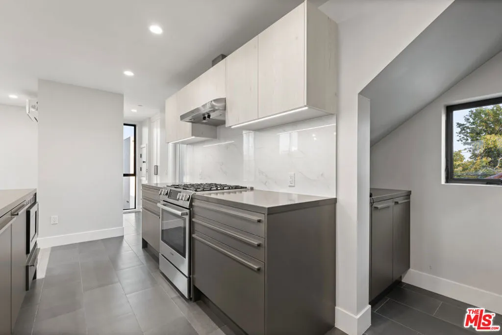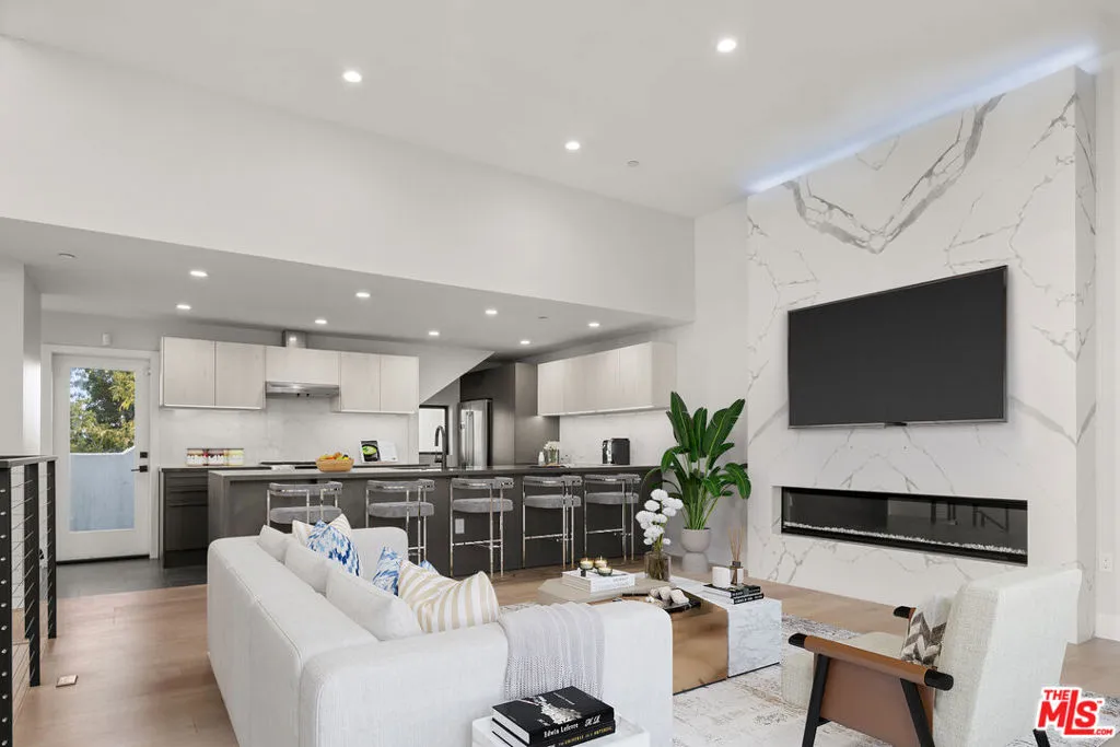 Welcome to the The Detroit Collection, an intimate assemblage of 4 architectural Single-Family Homes. This beautiful front facing home is equipped with high-end designer finishes, hardwood flooring, marble fireplace, and abundant natural light throughout. The incredible cook's kitchen features German-Import Leicht Cabinetry, huge eat-in breakfast bar, room for a large wine fridge or built-in pantry and dumbwaiter. The kitchen opens to a separate dining area and spacious living room with large windows - perfect for soaking up the SoCal sun and mountain views. Incredible open spaces and volume - designed meticulously to entertain on a grand scale. Enjoy dining al fresco on the private rooftop deck & enjoy the incredible 360 views of the city. Huge laundry room and storage area. A symphony of style this new to market modern masterpiece is an unparalleled experience.