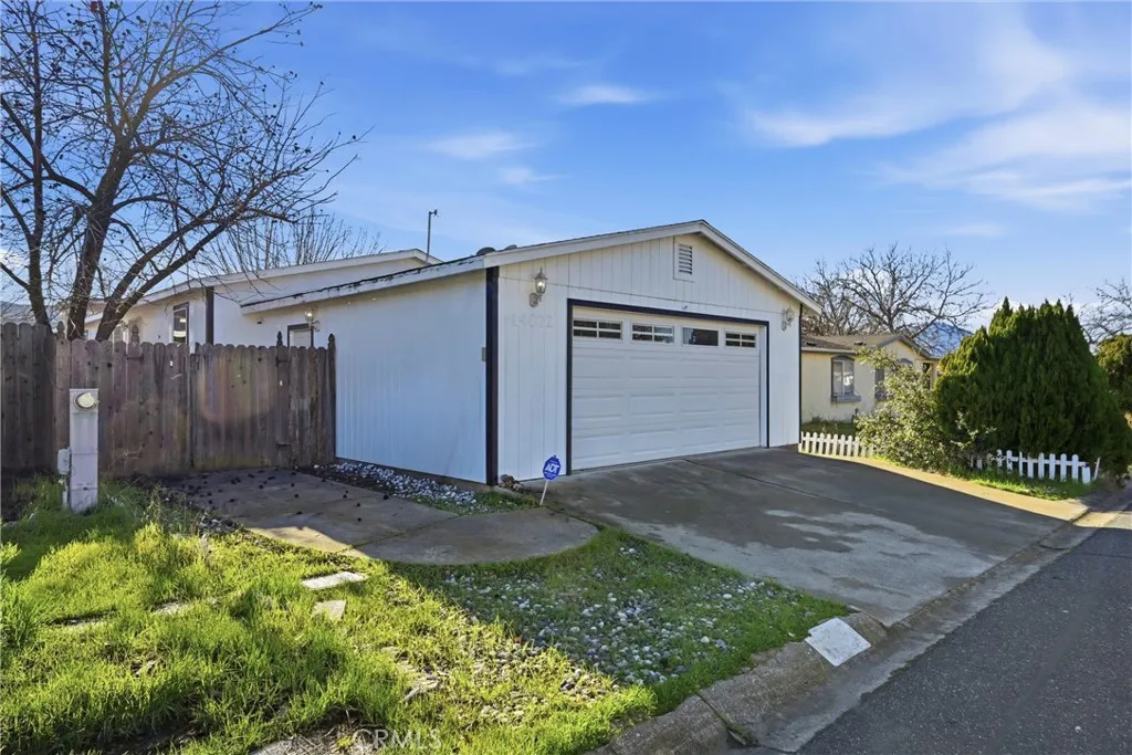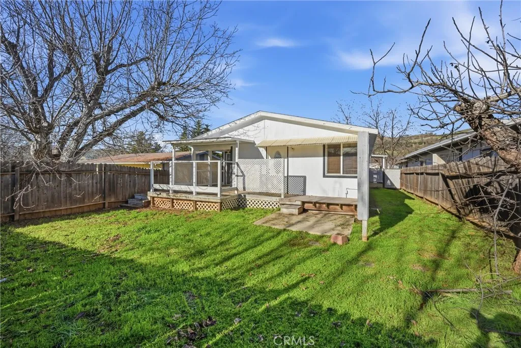 Freshly updated, this turn-key 3-bedroom, 2-bathroom manufactured home on a permanent foundation is located in the Orchard Shores community, offering access to a pool and clubhouse for a low HOA fee of just $37 per month. The home features a privacy-friendly floor plan, with the primary bedroom separated from the guest bedrooms and offering direct access to the back deck. The fully fenced backyard overlooks orchards and vineyards, providing a peaceful and private outdoor setting. Large kitchen and dining area also open to back deck. Recent updates include new modern laminate flooring, new interior paint, and new exterior paint, making the home truly move-in ready. Conveniently located just minutes from Clear Lake, this property offers easy access to boating, fishing, and outdoor recreation. A great opportunity for a primary residence, vacation home, or investment property in a well-maintained community.