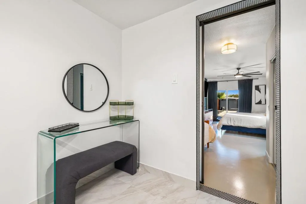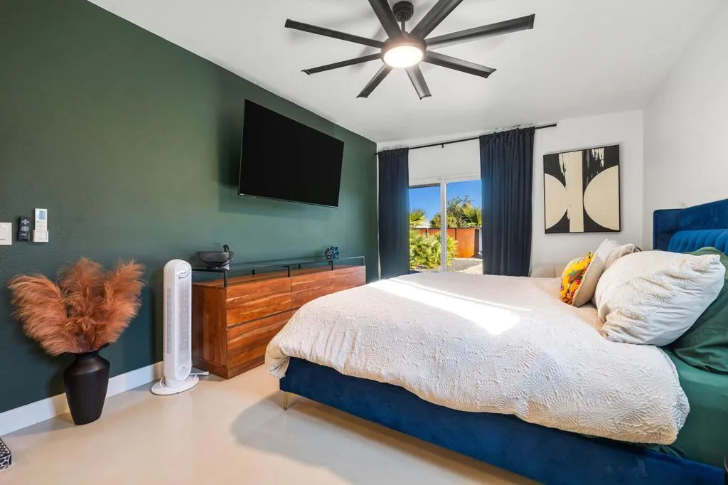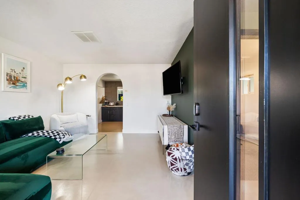 Turnkey Desert Charmer -- Fully Remodeled & STR-Ready!Welcome to this irresistibly cute desert retreat where modern design meets effortless comfort. Completely reimagined from the inside out, this home has undergone an extensive, no-expense-spared renovation--thoughtfully curated to feel fresh, stylish, and move-in ready for full-time living or a high-performing short-term rental.Every major system has been upgraded for peace of mind, including plumbing, electrical, gas, sewer, irrigation, and energy-efficient mini-split climate control. Brand-new windows bathe the interior in natural light, creating an airy, open feel throughout.The interiors are equal parts chic and cozy, featuring sleek concrete floors, a beautifully updated kitchen, and spa-inspired bathrooms with modern finishes. The primary bath steals the show with its custom polished concrete countertop--both striking and functional.Outside, the transformation continues. The home has new stucco for a clean, contemporary look and has been freshly painted inside and out. The backyard is an entertainer's dream with a stylish paver patio, brand-new Aluma wood patio cover with lighting and electrical, extensive artificial turf, new roof as of 2023, and a calming water feature that sets the tone for relaxed desert evenings. RV hookups add flexibility, while pre-run lines offer exciting potential for a future casita or expanded living space.Charming, turnkey, and packed with thoughtful upgrades, this desert oasis is perfectly suited as a primary residence, weekend getaway, or income-producing short-term rental. A rare blend of style, substance, and opportunity--this one is truly special.