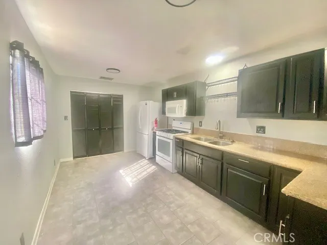 Well-located and functional, this 2-bedroom, 2-bath property has over 1000 sq ft of living space and sits on a fully chain-link fenced lot. large, flat yard—ideal for outdoor living, pets, or future projects. Tile floors throughout and recessed lighting. The large kitchen is equipped with granite countertops, dark cabinets, freestanding gas stove, and attached microwave. A convenient interior laundry closet right off of the kitchen. Huge master bedroom has recessed lighting and an attached master bath. A backyard shed provides additional storage or workspace. Conveniently located close to Highway 62, this property also features leased solar already installed for added energy efficiency. Current lease is $109/month buyer to take over contract. Current lease is paying for monthly electricity usage. A solid opportunity with a large, flat lot and great potential.