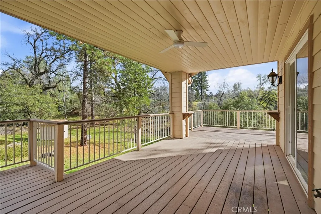 Set on 3.71 scenic acres with a seasonal creek and expansive outdoor living spaces, this custom-built Wishon home offers the perfect blend of comfort, privacy, and mountain lifestyle. The spacious 2,158 sq ft floor plan features an open, airy design highlighted by a beautifully remodeled kitchen with a propane range, large island, breakfast bar, and breakfast nook, all flowing effortlessly into the living area and formal dining space, ideal for gatherings or relaxed everyday living. A private entrance/mudroom and separate laundry room add both function and convenience. The thoughtfully isolated primary suite provides a peaceful retreat with sliding door access to the deck, a generous bathroom featuring a soaking tub, separate shower, dual sinks, and a walk-in closet. Fresh interior paint and newer laminate wood flooring enhance the bright, inviting feel throughout the main living areas and bedrooms. Outdoor living truly shines here with expansive, partially covered Trex decking that wraps around the home and extends to a back patio overlooking the seasonal creek and surrounding natural beauty. The property offers abundant parking, including an extra-deep finished 3 car garage. Ideally located just minutes from Miller’s Landing, the Bass Lake Dam and launch ramp, this home provides easy access to lake life, outdoor adventure, and nearby Yosemite, an exceptional mountain retreat in every sense.