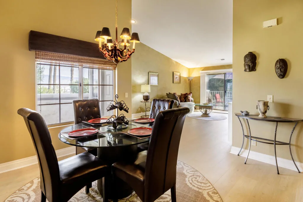 Welcome to 472 Evergreen Ash! This upper-level 2-bedroom, 2-bath home sits at the end of a cul-de-sac and looks out over the community pool with a bright eastern exposure. Inside, you'll find vaulted ceilings that make the space feel open and airy, a cozy fireplace for cooler evenings, and custom window blinds throughout. The kitchen features a comfortable nook that's perfect for everyday meals or morning coffee. Easygoing and comfortable, this home is a great place to relax and enjoy the surroundings. Residents of Desert Falls Country Club enjoy a relaxed, resort-style lifestyle, with HOA dues including use of the clubhouse, tennis and pickleball courts, fitness center, and multiple pool and spa areas to enjoy. Golf is available with membership or pay as you play. Close to great shopping, dining, casinos and Acrisure arena.