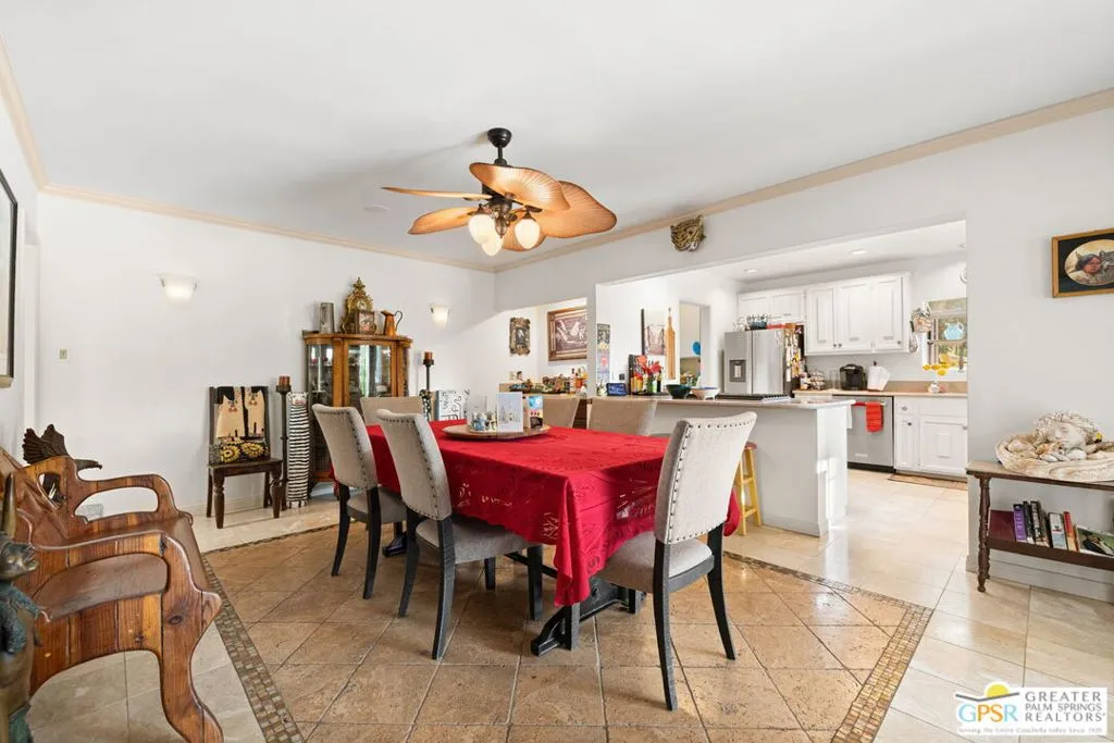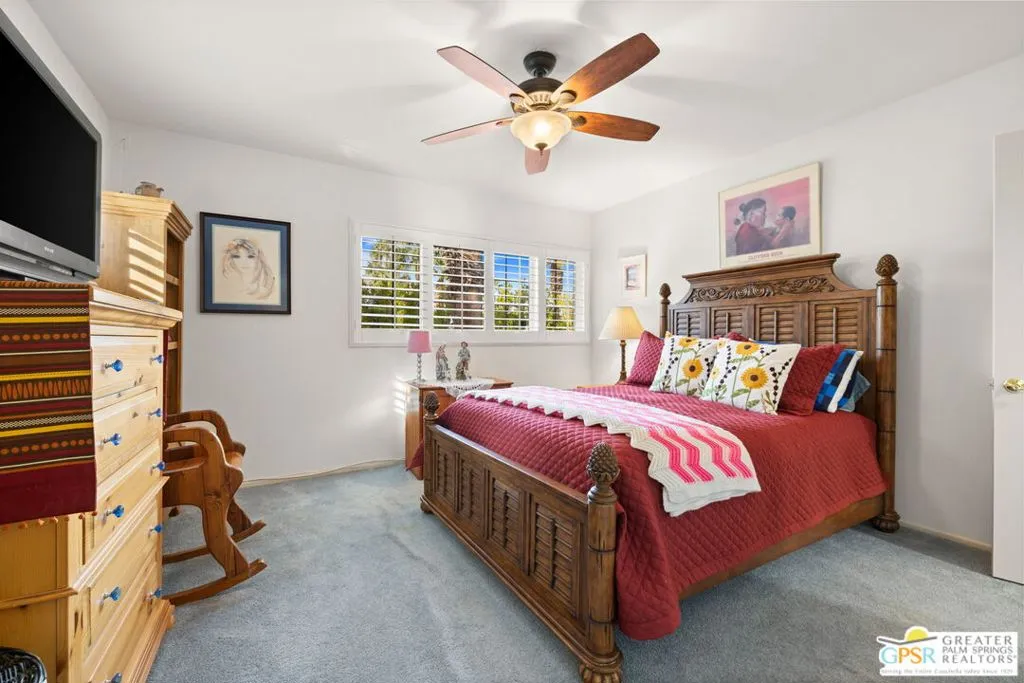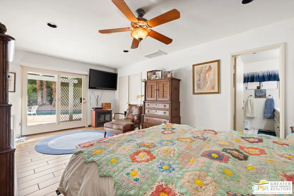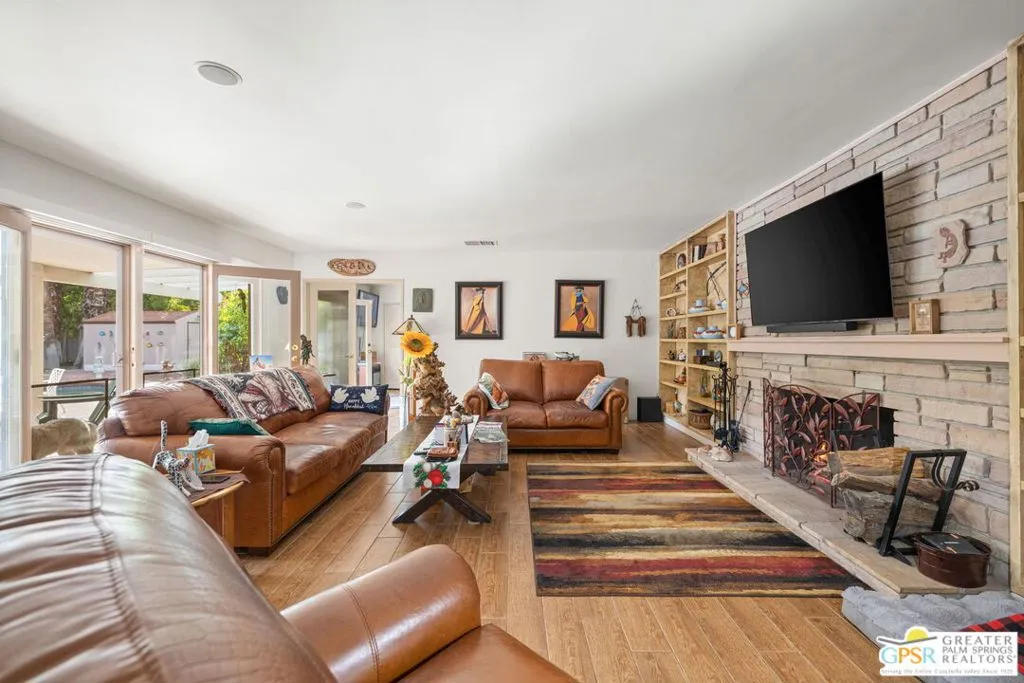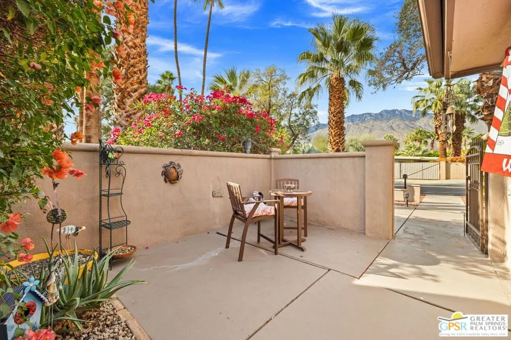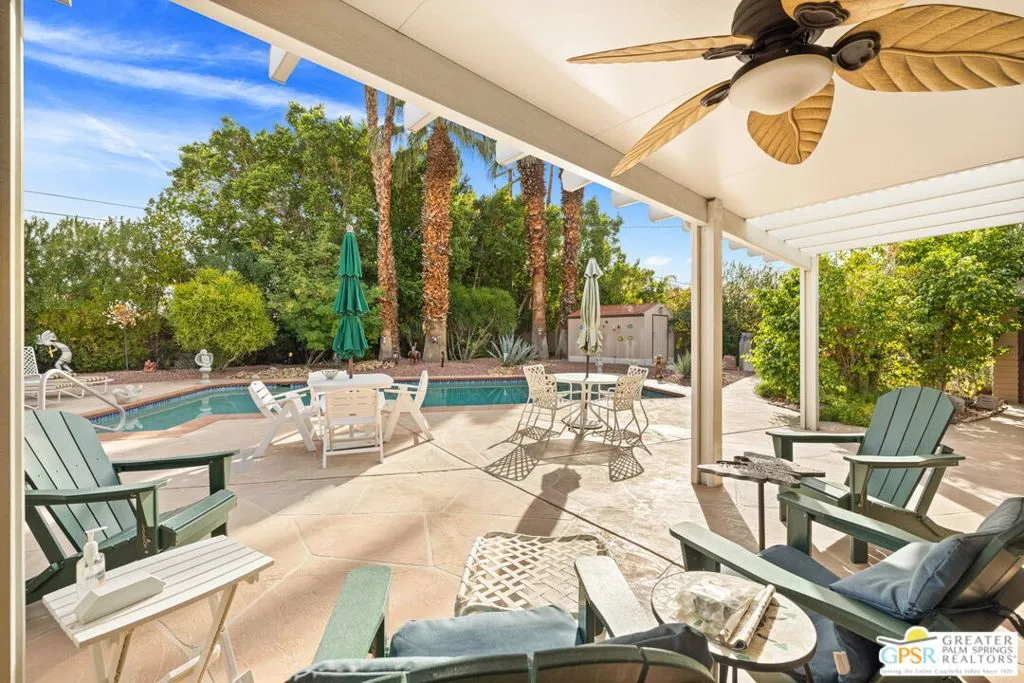 First time on the market in over 20 years and an exceptional Sunrise Park offering! Ideally located less than five minutes from vibrant downtown Palm Springs. This charming, private and spacious 4-bedroom residence sits on an expansive 14,000+ sq ft lot and offers over 2,500 square feet of refined desert living. Designed for both elevated everyday living and effortless entertaining, the home showcases sweeping mountain views from the resort-style backyard. Enjoy a sparkling oversized saltwater pool, shaded pergola, and above-ground spa creating the ultimate Palm Springs retreat. Lush landscaping in both front and backyard, ample fruit trees, and multiple outdoor storage sheds further enhance the indoor-outdoor lifestyle this property offers. Inside, the home features updated bathrooms, a newly redone walk-in closet inside primary bedroom, a stylish dry bar, and a tiled living room centered around a cozy fireplace. The upgraded kitchen includes newer appliances, new countertops, and a seamless flow into the main living spaces ideal for hosting. Recent mechanical improvements include a brand-new 5-ton A/C, a 2.5-ton heat pump, new ceiling fans, new washer/dryer, new carpet, new flooring/tile, and pavement painted and resurfaced outside. A total of two A/C units, two furnaces, and two water heaters, offering comfort, efficiency, and peace of mind. Additional highlights include a gated, covered carport for two cars, exceptional privacy, and fee simple land with no HOA, a highly sought-after combination in Palm Springs. This is an excellent opportunity to own a timeless home in one of the city's most desirable neighborhood. Perfect as a full-time residence, second home, or luxury desert escape.