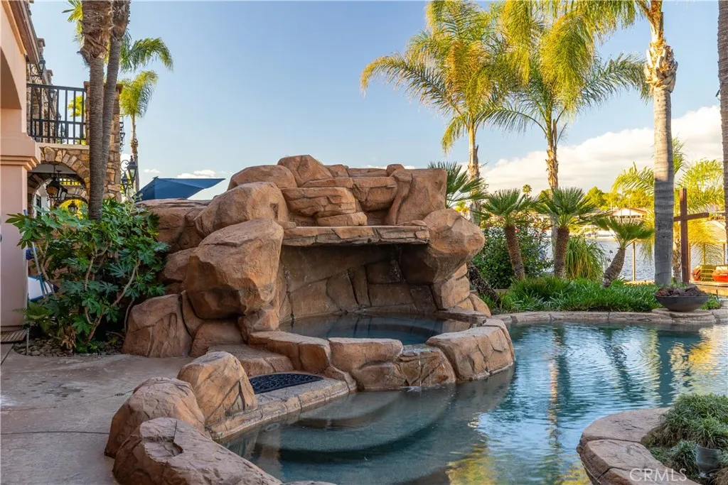 Set behind the gates of Canyon Lake, this unbelievable 5 bedroom, 5.5 bath waterfront estate is the definition of resort-style luxury—where architectural presence, scale, and lifestyle converge across 6,047 sq ft, all powered by 36 owned Tesla solar panels. Designed for both elevated everyday living and unforgettable entertaining, the home welcomes you on the mid-level through an impressive double-door entry or by one of the two attached garages. Rich wood flooring flows throughout this level, setting a warm and sophisticated tone. Highlights include a cinematic theatre room, gated wine room and private ensuite bedroom. The extraordinary kitchen, which opens to an expansive covered balcony with lake views, is truly a chef’s dream. This culinary space is impeccably appointed with high-end appliances to include a refrigerator/freezer, 4-burner cooktop with griddle, oven, two warming drawers, microwave and microwave drawer, wine cooler, beverage center, ice maker, built-in coffee system, two dishwashers, two oversized islands, prep sink and a generous walk-in pantry equipped with washer/dryer. A great room with fireplace and half bath complete this level. Ascend the grand staircase or take the private elevator to the upper level, where the luxurious primary suite serves as a true retreat, featuring a fireplace, soaking tub, walk-in shower, two private water closets, and an expansive walk-in closet with in-suite washer and dryer. This level also offers an additional ensuite bedroom and Jack-and-Jill bedrooms, thoughtfully designed for privacy and comfort. The lower level is where lakefront living truly comes to life, offering an additional room (currently used as a 6th bedroom), full bath with washer/dryer, built-in bar, and spacious open game room that flows seamlessly outdoors. Enjoy year-round entertaining with a lazy river resort-style pool and spa, outdoor kitchen, and direct access to the private lake, complete with dock, boat lift, and beach entry—a rare and coveted combination. Beyond the home, residents enjoy access to Canyon Lake’s premier amenities, including an 18-hole golf course, community restaurants, tennis and pickleball courts, skate park, equestrian center, baseball fields, and multiple parks. Description alone cannot capture the scale, craftsmanship, and lifestyle this estate offers. This is a must-see property. Please call to schedule your private showing.