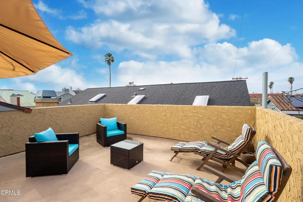 Welcome to Leilani Breeze House, a rare slice of paradise at Hollywood By The Sea, set on one of the three most beautiful stretches of beach in Ventura County. Enjoy rooftop island views, dazzling sunsets, and the Pacific Ocean just half a block away, creating a backdrop for memories that last a lifetime. Perfectly positioned above Channel Islands Harbor--gateway to Channel Islands National Park--and ideally located halfway between Malibu and Santa Barbara, this home places the best of the coast at your fingertips.Days are filled with wave play, kayaking, boating, paddle boarding, harbor cruises, visits to yacht clubs, wine tasting, championship golf, boutique shopping, and exceptional dining. This classic two-story beach house blends timeless coastal charm with extensive modern upgrades and generous living space.The home offers four exceptionally large bedrooms. The lower level features two spacious bedrooms with private guest quarters and a separate entrance--ideal for guests or multigenerational living. Upstairs, two oversized bedrooms share a beautifully appointed bathroom and open to an expansive rooftop deck designed for unforgettable entertaining, sunset gatherings, and star-filled evenings.The open living and dining area showcases vaulted ceilings with exposed wood beams, oversized glass windows, and sliding doors opening to a breezy balcony where ocean air flows freely. A raised brick fireplace with a rich wood mantle anchors the space, perfect for cozy nights after long beach days. The kitchen includes bar seating, ample cabinetry, stainless steel appliances, filtered water with dispenser, and a pass-through view to the balcony beyond.Additional highlights include an interior laundry and utility room ideal for sandy towels, a two-car garage with space for bikes and water toys, an oversized driveway with rare beachside guest parking, and a lockable electric vehicle charger. Extensive upgrades include high-efficiency double-pane windows and sliders, luxury plank flooring throughout, custom blinds, recessed and accent lighting with dimmers, ceiling fans in all bedrooms, a new gas fireplace, updated water heater, washer and gas dryer, motorized garage doors, exterior lighting, a built-in security system, keypad entry, and TVs with elevated electrical in every bedroom.Whether a full-time residence, vacation retreat, or investment opportunity, Leilani Breeze House delivers a lifestyle defined by sun, surf, and coastal living.
