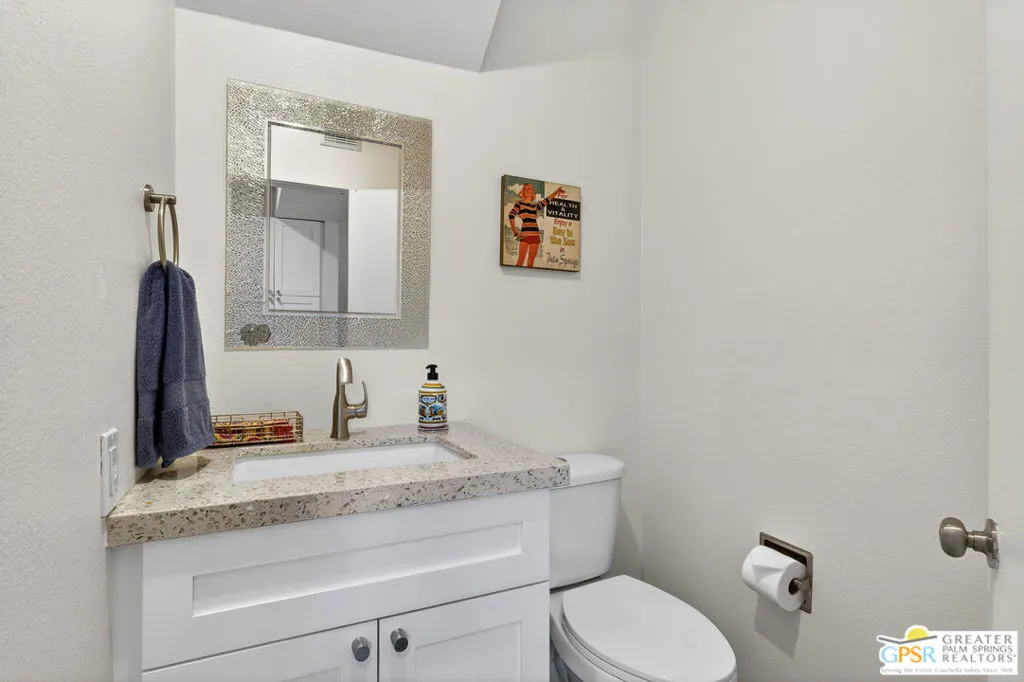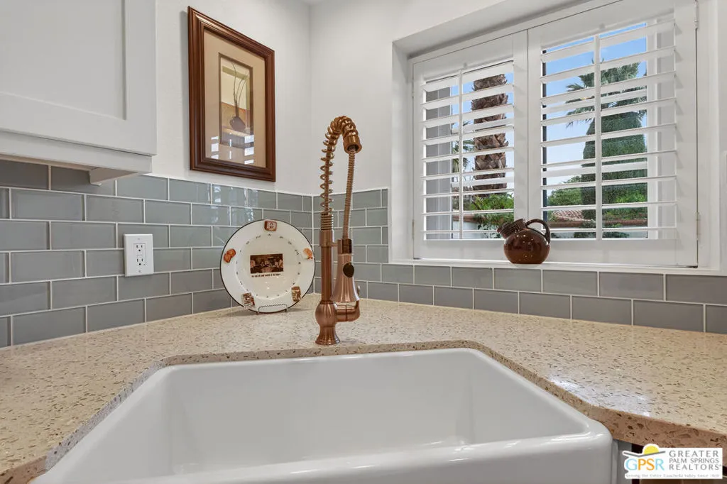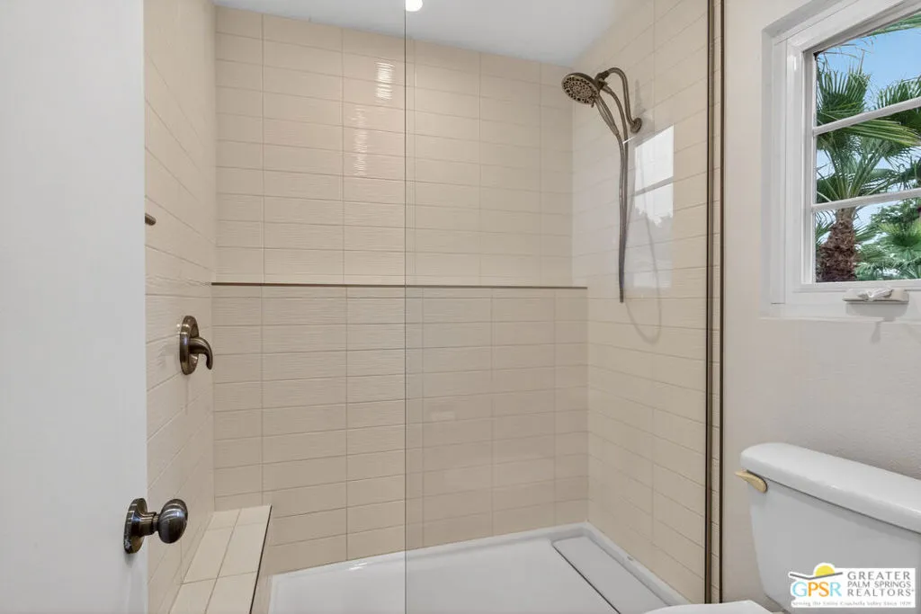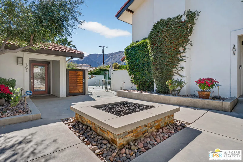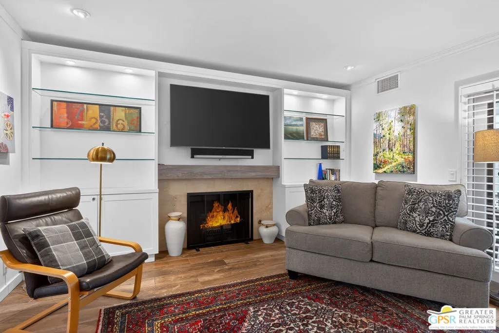 Live at the heart of Palm Springs history and lifestyle in this exceptional residence located in the iconic Historic Tennis Club neighborhood, one of the city's most prestigious, walkable, and architecturally rich enclaves. Set within Desert Seville, a gated boutique community of just four residences, this beautifully updated home offers approximately 1,592 sq. ft., two spacious primary suites, 2.5 baths, and two private patios, blending timeless Palm Springs character with modern comfort, efficiency, and thoughtful design. The flexible floor plan features dual primary bedrooms, each with walk-in closets and en-suite baths, ideal for full-time living, guests, or a refined second home. Light-filled interiors showcase Milgard doors and windows, updated interior lighting, newer tile flooring, and a stylish kitchen highlighted by a farmhouse sink, modern appliances, and coordinated hardware throughout, creating a polished, cohesive look. Beyond the square footage, the home offers several "hidden bonus" spaces that elevate everyday living, an under-the-stairs grandkids' hideaway/library/play area, plus a private office discreetly tucked behind a barn door, perfect for remote work or creative pursuits. Recent upgrades add exceptional value and peace of mind, including a high-efficiency Trane XV18 heat pump (2023), an owned Renova solar system with 14 panels, new water heater (2022), decorative front door glass insert (2024), and new stairway carpet (2025). Residents enjoy resort-style community amenities including a pool, spa, fire pit, secure gated entry, and two assigned parking spaces, all within a serene, private setting. Best of all, this unbeatable location places you just three blocks from the newly reopened Historic Plaza Theatre and moments from Palm Springs' most celebrated dining and social scene, Le Vallauris, Spencer's, Lulu, Kaiser Grille, Johannes, Pomme Frite, Sherman's Deli, Tyler's, Zin, and Johnny Costa's all an easy walk from your front door. Surrounded by iconic architecture and Hollywood legacy, the Historic Tennis Club neighborhood represents the very best of Palm Springs living. Opportunities to own in this location, especially within such a small, well-maintained community, are exceptionally rare. Historic. Walkable. Energy-efficient. Effortlessly Palm Springs.