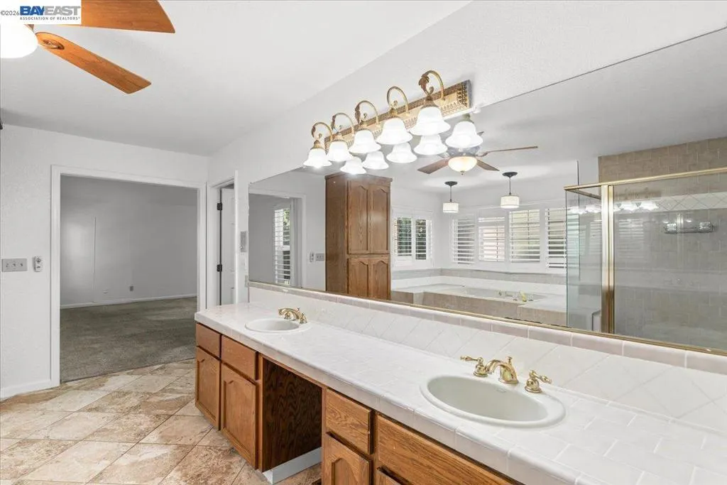 Welcome to 27000 Hillview Drive, Tracy—where refined country living meets premier equestrian lifestyle. Located in the highly coveted Bojoli Estates, this exceptional single-story custom home offers over 3,400 sq. ft. of elegant living on 1.34 beautifully landscaped acres. From the moment you arrive, the circular driveway, brick-accented façade, and grand formal entry set the tone for timeless craftsmanship and pride of ownership. Inside, the thoughtfully designed floor plan features 4 spacious bedrooms and 3 full baths, including a desirable Jack-and-Jill suite, ideal for family or guests. Entertain effortlessly in the formal living and dining rooms, or relax in the warm family room highlighted by a cozy fireplace. The gourmet kitchen with breakfast nook serves as the heart of the home—perfect for everyday living and hosting alike. Fresh interior and exterior paint combined with professionally refreshed landscaping make this home truly move-in ready. Designed with the equestrian enthusiast in mind, the property boasts a 30’ x 10’ barn, two 10’ x 24’ paddocks, a 120’ x 72’ riding arena, and a newer 7’ vinyl privacy fence. There is ample RV, trailer, and boat parking, with generous space for additional vehicles or storage. Adding to its appeal, the property may offer potential