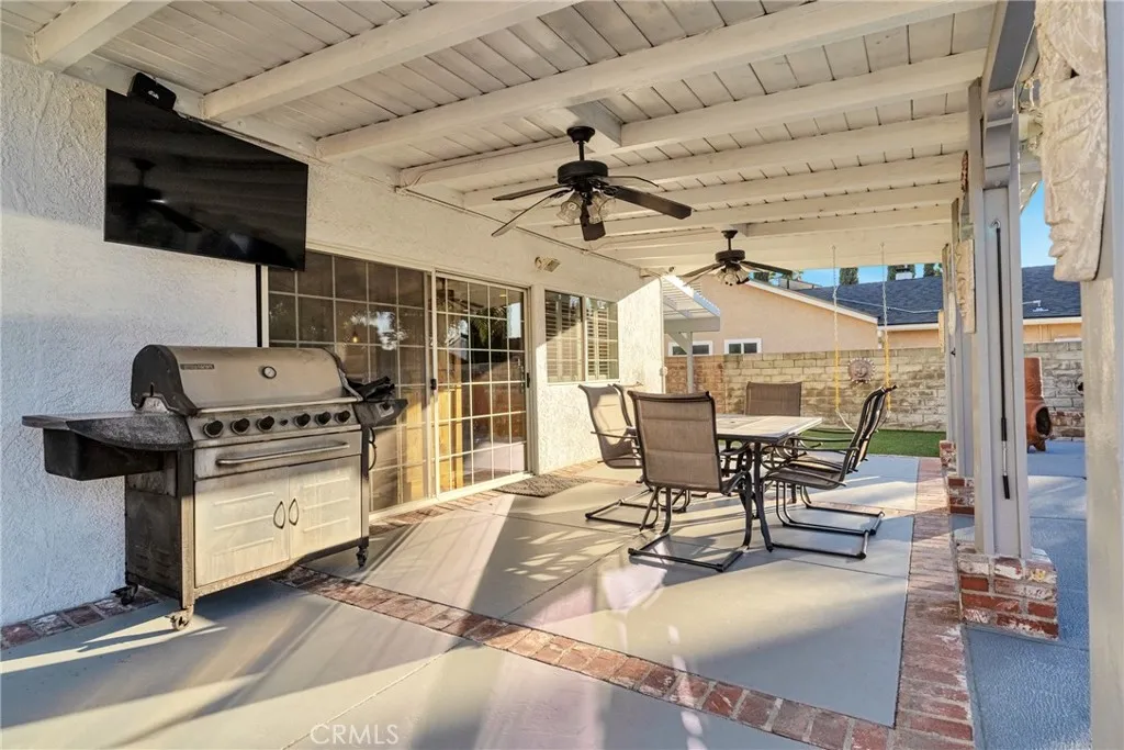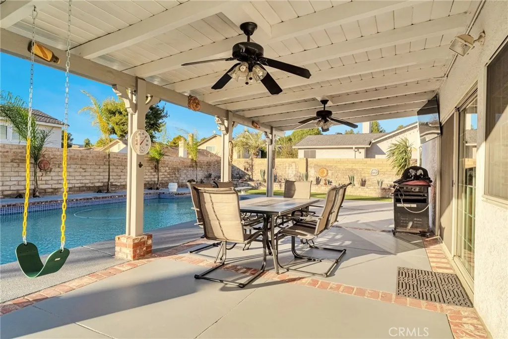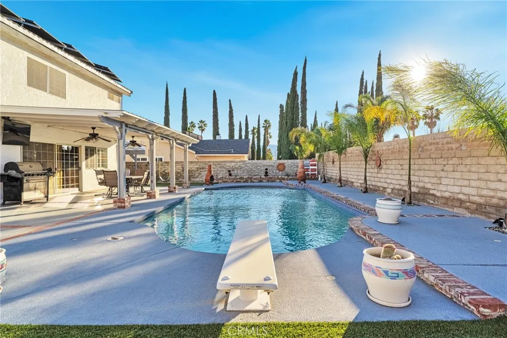 The backyard is a true oasis, featuring a sparkling heated pool, multiple patio covers, artificial turf for low maintenance living, dual RV access on both sides, and a dedicated gas connection for your BBQ, making outdoor entertaining seamless and convenient.