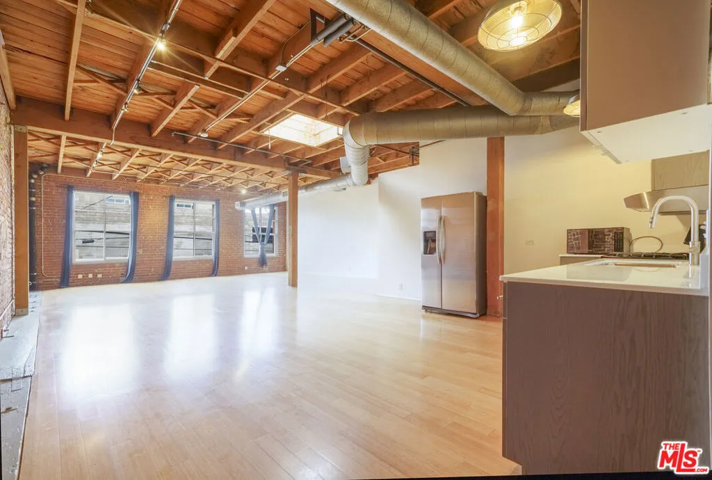Top-floor live/work loft at the historic Molino Lofts offering authentic industrial character in the heart of the Arts District. This spacious residence features soaring ceilings, oversized west-facing windows, exposed brick walls, and original timber beams that create a bright, open, and airy environment ideal for both living and working. The flexible open-concept layout allows for multiple configurations to suit a variety of lifestyles, whether used as a primary residence, creative studio, or workspace under true live/work zoning. The kitchen and living areas flow seamlessly, providing an ideal setting for entertaining or everyday living, while the top-floor positioning enhances natural light and privacy. Subtle DTLA skyline views and classic warehouse architecture further elevate the appeal of this unique loft. This is a rare opportunity for a buyer to thoughtfully design and personalize the space into a true sanctuary that reflects their lifestyle, creativity, and vision. Located in one of Los Angeles' most dynamic neighborhoods, the property is just moments from acclaimed dining and retail including Bestia, Bavel, Girl & the Goat, Blue Bottle Coffee, and Verve Coffee Roasters, along with galleries, boutiques, and ongoing development that continues to strengthen the long-term appeal of the Arts District. A rare opportunity to own a character-rich loft in a historic building with true live/work flexibility, strong architectural presence, and a premier Arts District location.