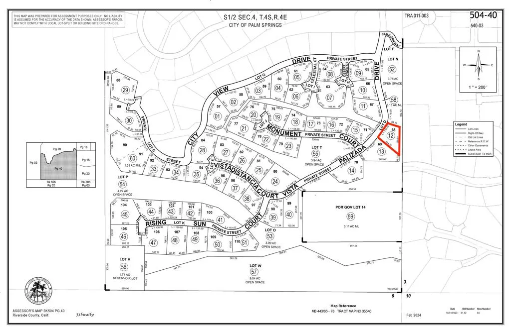 Perched in the prestigious gated community of Desert Palisades, The Flume House (Lot 68) presents a rare opportunity to build your dream home in one of Palm Springs' most architecturally significant enclaves. This .41-acre homesite offers panoramic, unobstructed southwest views capturing dramatic sunsets, rugged mountain silhouettes, and twinkling city lights below. The property has architectural designs and survey work available, saving you time and expense in the pre-construction process. Set amidst modernist masterpieces, this homesite is ideal for those who value both privacy and visual inspiration. With its elevated position and natural desert terrain, The Flume House is ready to accommodate a striking custom residence that blends seamlessly into its surroundings. Along the vivid, sun-drenched hillsides of Chino Canyon, Desert Palisades is artfully crafting the next chapter in the story of Palm Springs, melding its rich, unmistakable architectural heritage with extraordinary, forward-thinking design vision. Just minutes from downtown Palm Springs, Desert Palisades is where bold architecture meets raw desert beauty--offering a secure, serene lifestyle in a timeless setting.