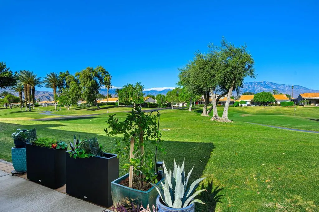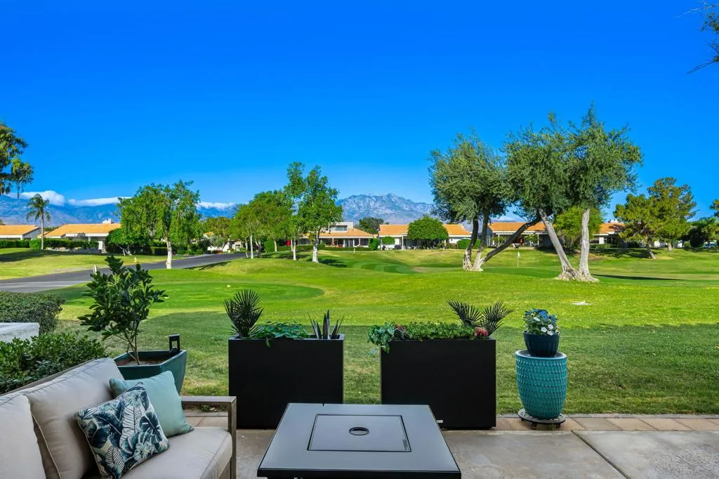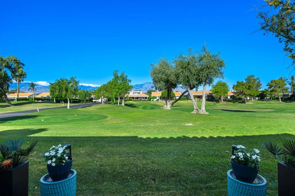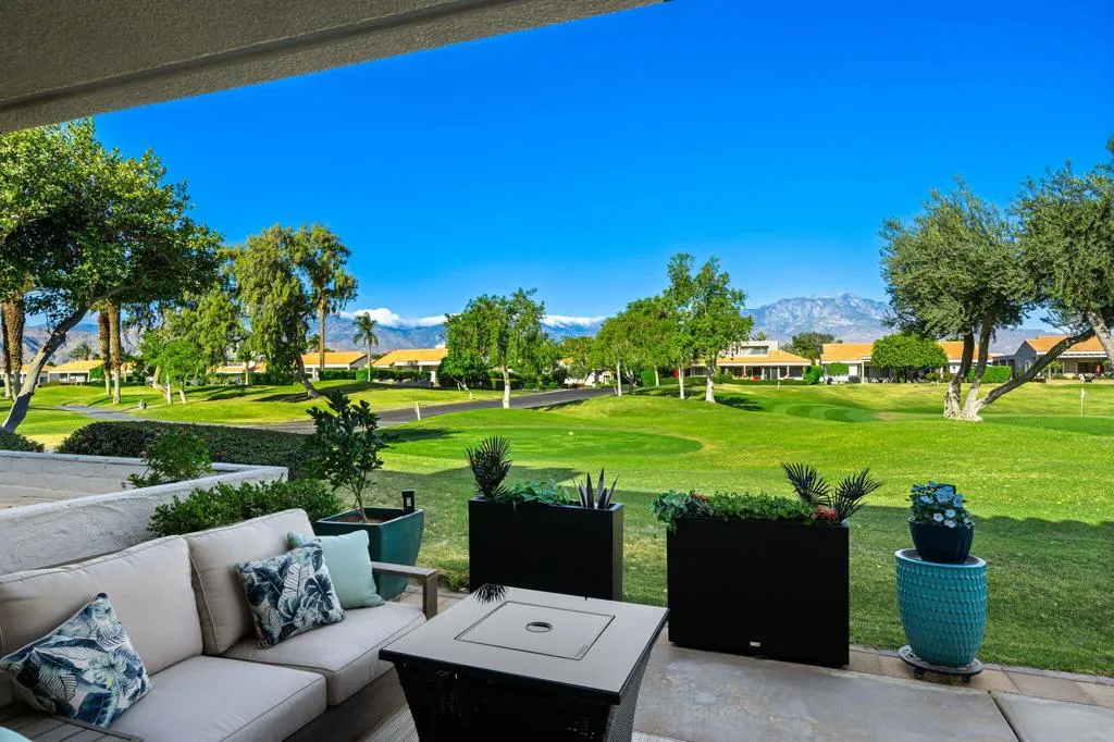 Wake up to lush fairway views and enjoy breathtaking west-facing mountain sunsets from this beautifully updated residence in Mission Hills East, located within the prestigious Mission Hills Country Club. The expanded rear patio serves as a true extension of the living space, offering an inviting outdoor setting ideal for entertaining, sunset gatherings, or relaxing while overlooking the rolling greens and surrounding mountains.A private gated courtyard with mature cacti creates a welcoming desert retreat and leads into a warm, thoughtfully designed interior. The home features wood laminate flooring, a cozy fireplace, and a stylish wet bar, ideal for both everyday living and entertaining. The flexible floor plan offers a spacious living and dining area, two private primary suites, and a third bedroom well-suited for guests or a home office. The kitchen blends function and style with slab granite countertops and newer appliances, including an induction air-fryer/convection oven. Recent upgrades include new windows and sliding doors, recessed lighting, a newer heat pump air conditioning system, duct-work replacement, updated switches and receptacles, and enhanced indoor-outdoor flow that complements the home's resort-style setting.