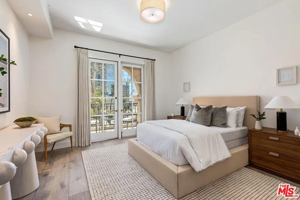 EASY PARKING FOR SHOWINGS- VALET Situated within The Brentwood, one of the neighborhood's most coveted full-service residences, this sophisticated corner townhome offers a rare blend of privacy, scale, and elevated living. Designed for those who appreciate both luxury and discretion, the residence enjoys the conveniences of a premier building with the feel of a private home. Residents of The Brentwood enjoy an exceptional suite of amenities, including 24-hour concierge, on-site management, spacious fitness center, rooftop pool and spa with sweeping city views, elegant banquet facilities, valet parking, and private storage.The main level unfolds into a dramatic, light-filled living space highlighted by soaring double-height ceilings and expansive picture windows an impressive setting for both intimate living and grand entertaining. A formal dining room with custom wet bar seamlessly connects to the chef's kitchen, which is outfitted with top-tier appliances, generous counter space, and thoughtful storage, making it as functional as it is refined. Multiple outdoor spaces, including a generously sized private patio, extend the living experience outdoors. A stylish powder room and full laundry room complete the main level. A gracefully curved grand staircase leads to the upper floor, where a serene office or library bonus space creates an ideal retreat for work or relaxation. The primary suite is a true sanctuary, with a spa-inspired en-suite bath, two substantial closets, and a private balcony overlooking lush surroundings. The second en-suite bedroom, also with balcony access, offers exceptional comfort and privacy for guests or family. Ideally located in the heart of Brentwood, moments from acclaimed dining, upscale boutiques, and cultural destinations, this exceptional residence presents a rare opportunity to enjoy refined living within one of Los Angeles' most desirable communities.