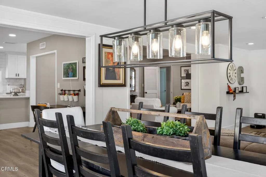 Welcome to this beautifully updated, move in ready home ideally located adjacent to the desirable Oaks neighborhood. Thoughtfully refreshed and meticulously maintained, this 3 bedroom, 2 bathroom residence is ready to welcome its next owner. The fourth bedroom is currently used as a home office, offering flexibility to suit today's lifestyle.Step inside to an inviting open concept living space featuring upgraded luxury flooring, recessed lighting throughout, and a seamless flow ideal for both everyday living and entertaining. The tastefully remodeled kitchen is a true centerpiece, showcasing classic subway tile, a charming farmhouse sink, and modern finishes that blend style with function. The living room offers warmth and character with a wood burning fireplace.All bedrooms are conveniently located along the hallway, creating a functional and private layout. The main bedroom serves as a relaxing retreat with French doors opening to the backyard and a generous walk in closet. Additional highlights include recently painted interior and exterior surfaces, new hardware and light fixtures throughout, and a two-car garage with extra workshop space. The low maintenance front yard is thoughtfully landscaped for curb appeal and ease, and features an RV washout.