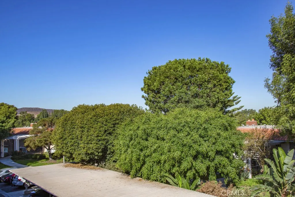 Welcome to 3111-P Via Serena South – a gorgeous remodeled two-bedroom, two-bath, upper LA BRISA residence in the Laguna Woods senior community. Situated in a quiet cul-de-sac far from busy roads and noisy highways, this home boasts a spectacular panoramic view of trees, hills and the Saddleback Mountains. The rear balcony is the perfect setting for outdoor entertaining, dining and relaxing while taking in the lovely view. The highly upgraded kitchen features ample cabinet storage with convenient pull-out drawers, a built-in recycling drawer, beautiful stone countertops and stainless-steel appliances. The spacious primary bedroom suite has ample closet storage with mirrored doors. The versatile guest bedroom could also serve as a home office, workout room or arts and crafts studio. Additional upgrades throughout the residence include smooth ceilings, crown molding and baseboards, ceiling fans in the bedrooms, plantation shutters, stunning engineered wood oak flooring and central HVAC. Bold colors throughout the home create a warm and welcoming environment. A full-size stackable washer/dryer is conveniently located in a hall closet. The nearby assigned carport has large cabinets for additional storage. Plus, there is ample guest parking in the cul-de-sac and street. Do not miss this beautiful home!