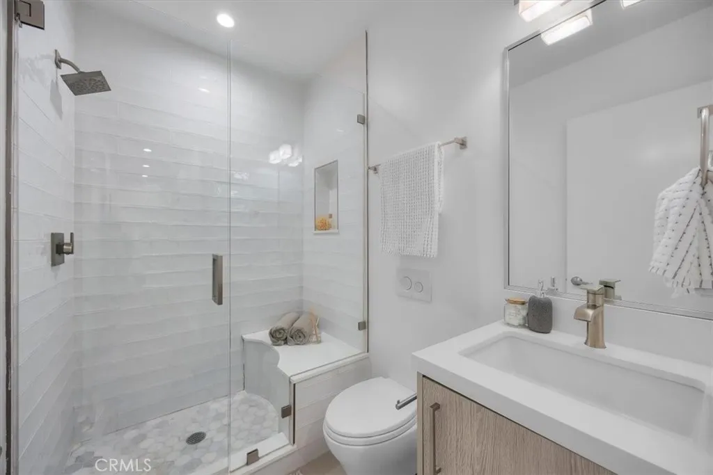 New reduced price! Modern, contemporary townhome built in 2022, offering an exceptional price point for the Manhattan Beach zip code. Located on a cul-de-sac road with very limited through traffic, the open top floor features wide-plank oak floors, high ceilings, and oversized windows that bring in natural light throughout the day. The kitchen includes a Bertazzoni Italia Professional Series appliance suite, Carrera quartz waterfall countertops, and generous storage. A private balcony overlooks a greenbelt, creating a rare sense of privacy. All three bedrooms are on the same level, including a large primary suite with a walk-in closet and spacious bathroom with dual vanities, soaking tub, and walk-in shower. Additional features include in-unit laundry, central HVAC, a central vacuum system, an enclosed shared yard, and an attached two-car garage with guest parking. Located in the Manhattan Beach Unified School District and less than two miles from the beach, this home delivers strong value in one of the most sought-after coastal zip codes in California.