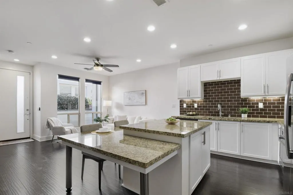Welcome to your dream home in the heart of Civita—San Diego’s most sought-after master-planned community. Located in the desirable Frame & Focus neighborhood, this contemporary rowhome offers a perfect balance of modern design, comfort, and low-maintenance urban living. Built in 2015, this well-designed Focus home features an open great-room layout that seamlessly connects the living, dining, and kitchen spaces—ideal for both everyday living and effortless entertaining. With three bedrooms and two-and-a-half baths, the layout is thoughtfully suited for growing families, professionals, or anyone who values flexible, functional space. The kitchen anchors the home with clean lines, modern finishes, and room to gather, while the bathrooms feature spacious vanity areas and upgraded fixtures, creating a calm, spa-like experience. A two-car attached garage with direct access adds everyday convenience and extra storage. Fresh paint throughout adds a crisp, move-in-ready feel. Living in Civita means enjoying resort-style amenities just outside your door, including an award-winning park, a high-end community center, and a fully equipped fitness gym that feels more like a private resort than a neighborhood amenity. With walking trails, green spaces, and convenient access to shopping, dining, and major freeways, this home represents a truly special opportunity in one of San Diego’s most vibrant communities. Some photos have been virtually staged.