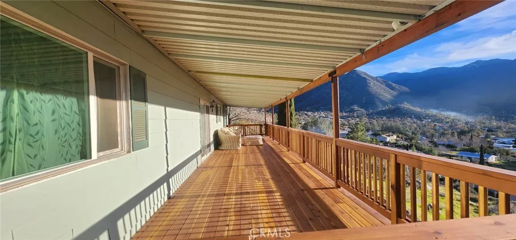 Enjoy life up in the Kern Valley. This home is great for a Weekender or Full Time. Huge 1,440 Square Foot mobile home - Two bedrooms, two bathrooms! Fantastic open bright floorplan Amazing Views from most of the rooms! High Ceilings! Central AC! Family room has a wood burning stove to warm up the house. There is also a dining area with a built in hutch. The kitchen has lots of cabinets, great cooking area for the cook of the family. The Master bedroom has an attached full bath. Huge Laundry room with side by side washer/dryer and 2nd refrigerator too! There is a large outside that's great for entertaining with a covered deck length of the home. The property has an attached nice size two car garage w 220 service. Large property with plenty of room for RV and several more cars too! Amazing neighborhood – Best area of Bodfish! Easy drive and located at the top of the valley on a cul-de-sac, minutes to town, near Lake Isabella and the river. Great condition! Pride of Rentership!
