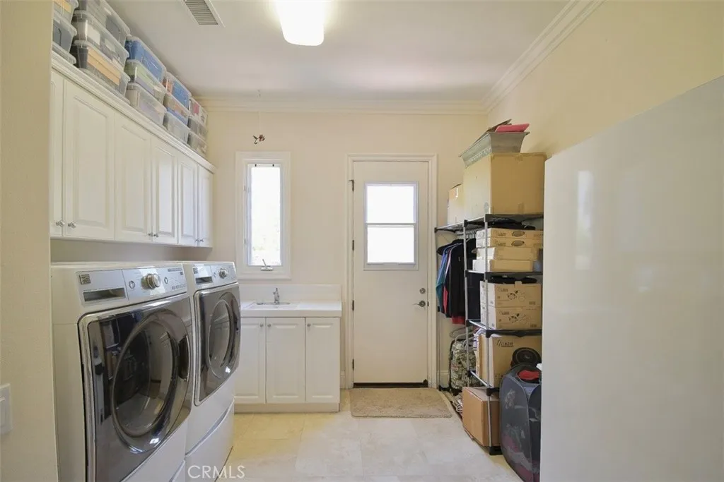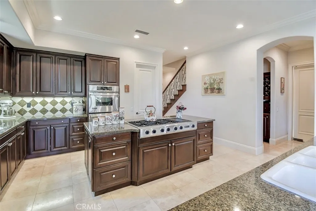 Welcome to the Prestigious Stonefield Custom Estate on a Quiet Cul-de-Sac nestled behind the gates of the exclusive Coto de Caza community! This remarkable 5,656 sq. ft. estate sits gracefully on a beautifully landscaped 13,676 sq. ft. corner lot. With 5 spacious bedrooms, 5 full bathrooms, and an additional half bath. This residence offers timeless elegance, superior craftsmanship, and thoughtful design throughout. From the moment you arrive, the stately curb appeal and lushly manicured front yard sets the tone for what lies within. The grand formal entry welcomes you with soaring ceilings and an abundance of natural light, flowing seamlessly into refined living and entertaining spaces. The first level features a formal living room with a custom wood-burning fireplace and dining room along with an executive office appointed with dark wood cabinetry, rich coffered ceiling, a custom gas-burning fireplace, and a hidden room that reveals custom storage and shelving. The chef’s kitchen is a culinary masterpiece, boasting two large center islands, gleaming granite countertops, high-end appliances, a butler’s pantry with a wine cellar, and an impressive expanse of cabinetry. The adjoining family room exudes warmth with a custom wood-burning fireplace and coffered ceiling. A spacious downstairs bedroom with a full bath and a generous laundry room with abundant storage and utility sink complete the main level. Dual staircases, including a grand curved staircase at the entry, lead to the second floor where you’ll find a loft with library and four additional bedrooms with ensuite bathrooms. An additional bonus suite is enhanced with a kitchenette including a sink and refrigerator, creating an ideal in-law or guest retreat. The luxurious primary suite is a sanctuary of comfort, featuring a private sitting area with custom gas-burning fireplace, vaulted ceilings, and a spa-inspired bathroom with soaking tub with jets, separate shower, separate sink vanities, enclosed toilet and bidet, as well as an expansive designer organized walk-in closet. Additional highlights include elegant plantation shutters throughout, central internal vacuum system, three zone A/C/ furnaces, recessed lighting, ceiling fans, two two-car garages with epoxy floors, custom cabinetry, workbench, and 220V for EV charging. Owned solar ensures energy efficiency. This is more than a home, this estate is a lifestyle defined by elegance, functionality, and the best of indoor-outdoor living!