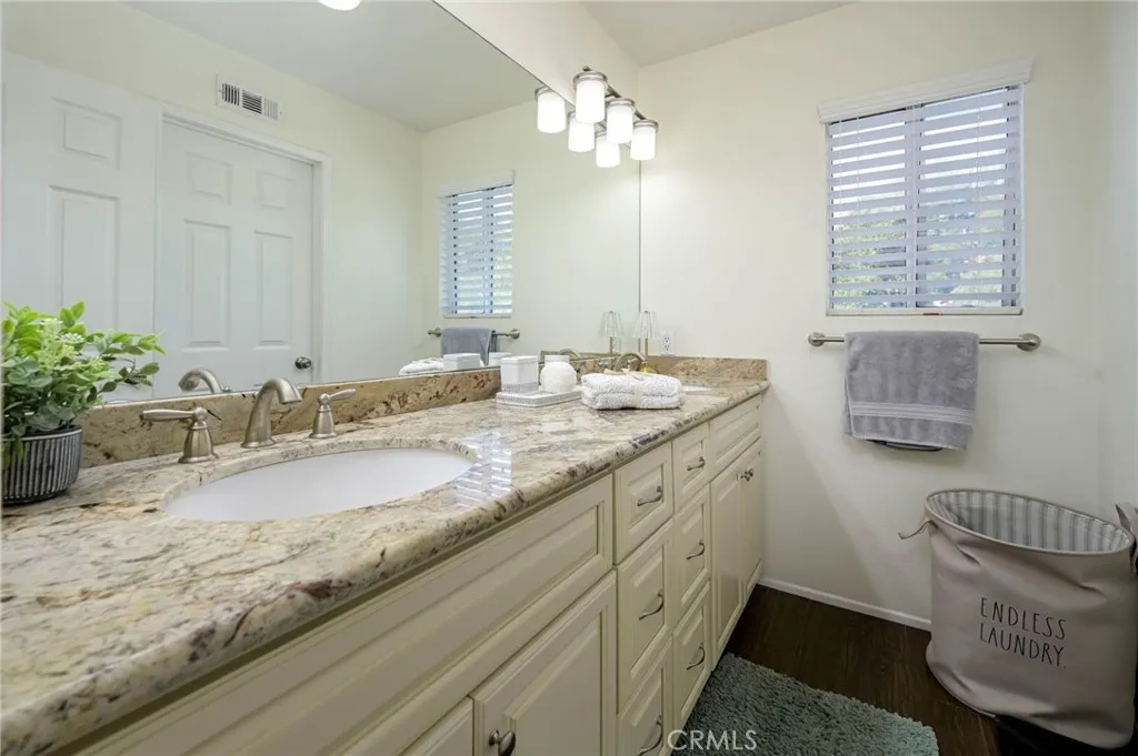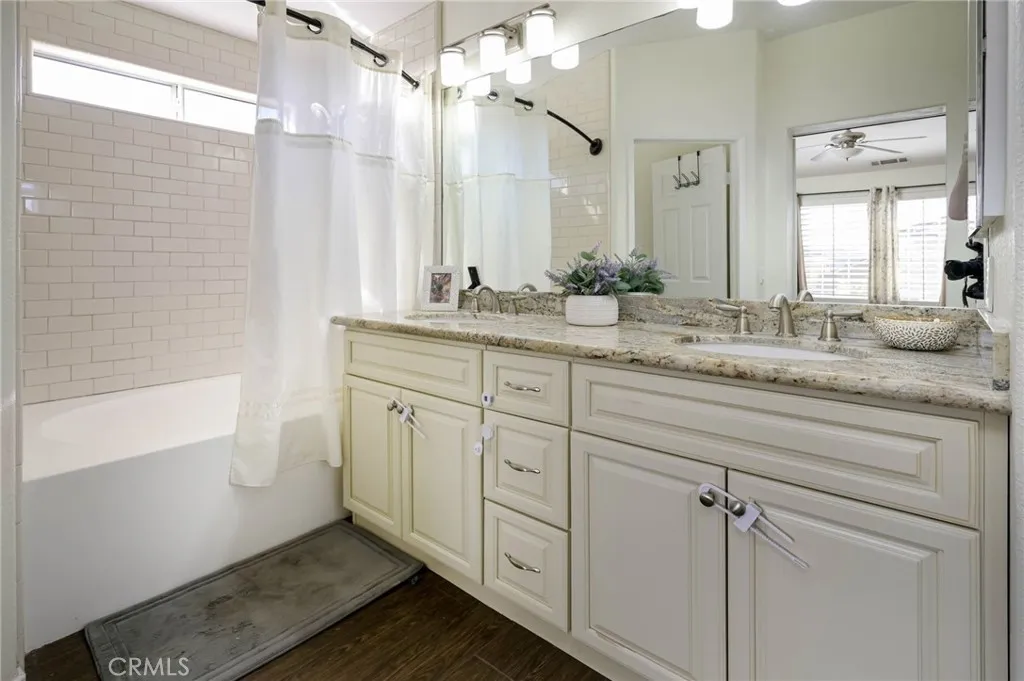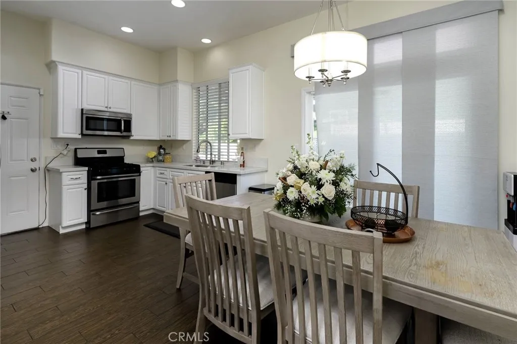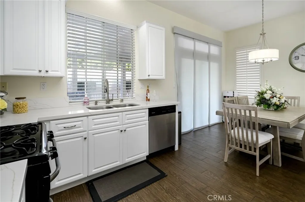 Price Reduced! A Refined Showcase of Harmonious Symmetry & Sophisticated Architecture! 3RD bedroom is currently used as a multi-purpose loft. Beautifully maintained & move-in ready, this home blends charm with functionality, featuring an open, free-flowing floor plan. A welcoming entry flows into the living room, enhanced by porcelain tile floors, recessed lighting, wood plantation shutters, and a gas fireplace with stacked stones—perfect for quiet evenings or lively gatherings. The dining area, beneath a striking chandelier, features resplendent porcelain tile flooring & wood plantation shutters. The adjacent kitchen is stylish & practical, with white cabinetry, gleaming quartz countertops, porcelain tile floors, and stainless steel Frigidaire appliances, including a built-in microwave, refrigerator, 4-burner gas range & dishwasher. A backyard-facing window fills the space with natural light. The primary retreat offers a cathedral ceiling, ceiling fan/light fixture, plush Berber carpet, walk-in closet, and an en suite bath with porcelain tile floor, granite vanity, double sinks, and a soaking tub with ceramic tile surrounds. A secondary BR & multi-purpose loft—ideal as a 3rd bedroom, home office, or creative space—feature plush Berber carpeting, faux wood blinds & mirrored closet doors. The hallway bath is elegantly appointed with dual sinks, granite countertop, tub with full-length tile surrounds & oversized mirror. Upgrades/Amenities abound: luxury waterproof porcelain tile floor on the main level, plush Berber carpet upstairs, wood plantation shutters, faux wood blinds, mirrored closet doors, hand-troweled textured ceilings, rounded bullnose corners, energy-efficient dual-pane windows with architectural detailing & a color-coordinated fire-resistant concrete tile roof. The A/C unit (replaced in 2022) & water heater tank (replaced in November 2025) enhance comfort, while the washer & dryer, included in the sale, are conveniently located on the 2nd floor. The 2-car garage is EV charger-ready with a sectional roll-up door and direct home access. Step through the dining room’s sliding doors to a low-maintenance backyard with patio cover—perfect for unwinding & imbibing nature's wonders. Nestled in a private community, this home offers a versatile, light-filled layout, seamless indoor-outdoor flow, and easy access to major freeways, shopping, dining & nearby parks. A residence of elegance & comfort offering enduring charm & ready to welcome you home.