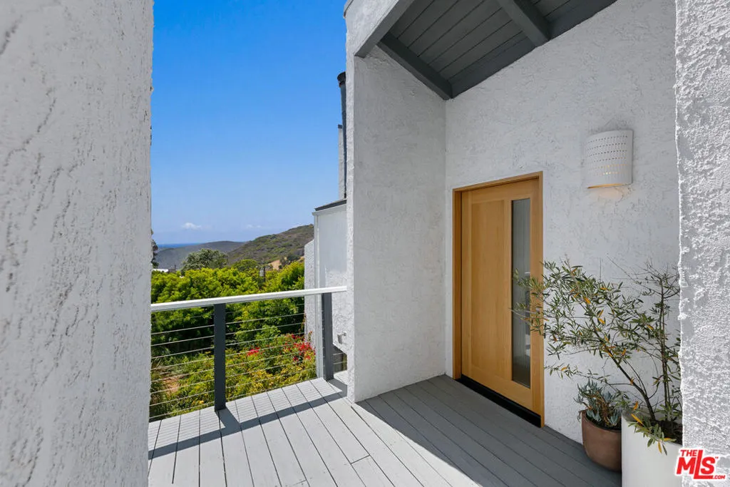Incredible private Malibu retreat nestled in the hills of El Nido, just minutes from the beach.. This stylish home blends modern architecture with warmth and natural light. Vaulted ceilings, exposed beams, and expansive windows frame breathtaking ocean and mountain views throughout. The open living area flows effortlessly from the cozy fireplace to a sunlit patio, ideal for everyday living and entertaining. The chef's kitchen features new appliances, a center island, and skylights that flood the space with natural light, bringing the outdoors in. The serene primary suite offers dual closets and a beautifully renovated en-suite bath. Two additional bedrooms provide flexibility for guests, a home office, or a nursery. A separate bonus room creates the perfect private office or creative space, and a detached studio serves as an ideal guest suite, gym, or income-producing opportunity. Outside, enjoy peaceful garden spaces, a hammock strung between palms, and a private spa with hillside views. Located just minutes to Malibu's best beaches, hiking and dining. Offered for purchase or lease.