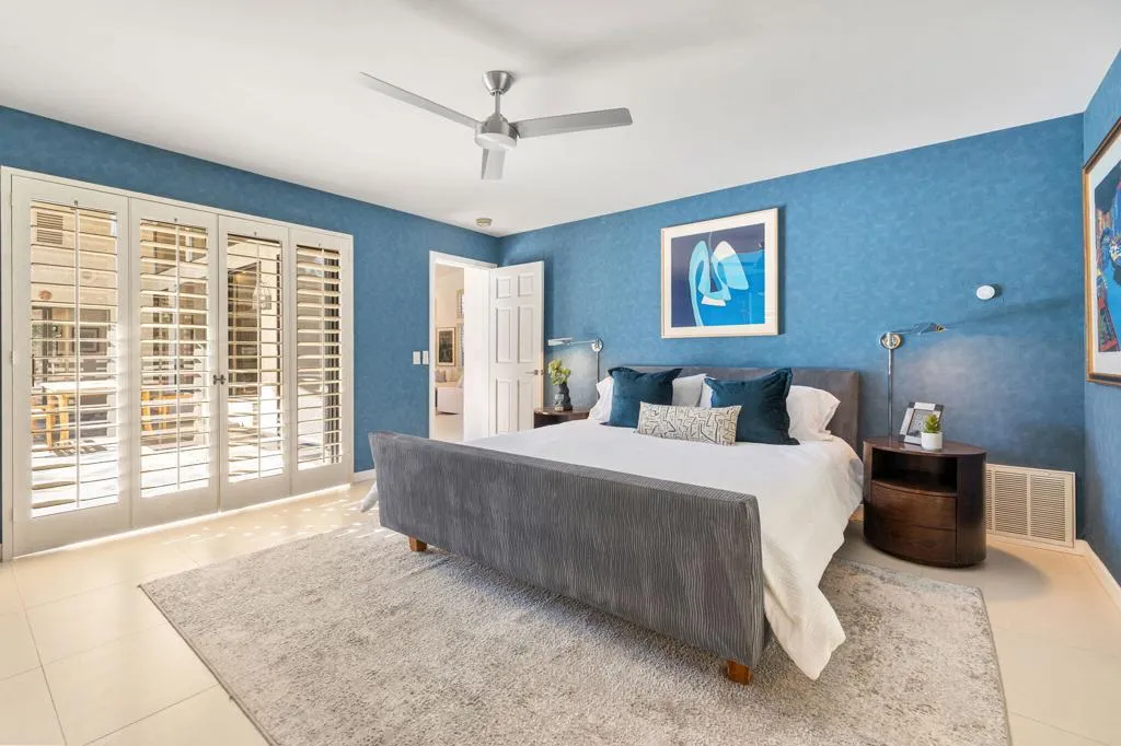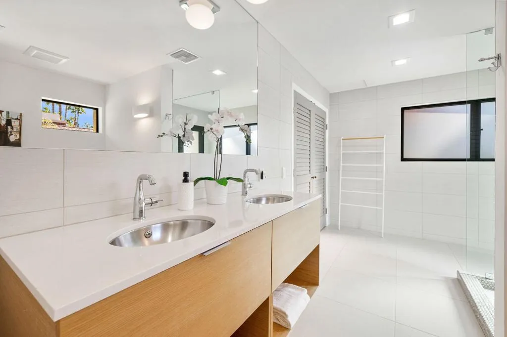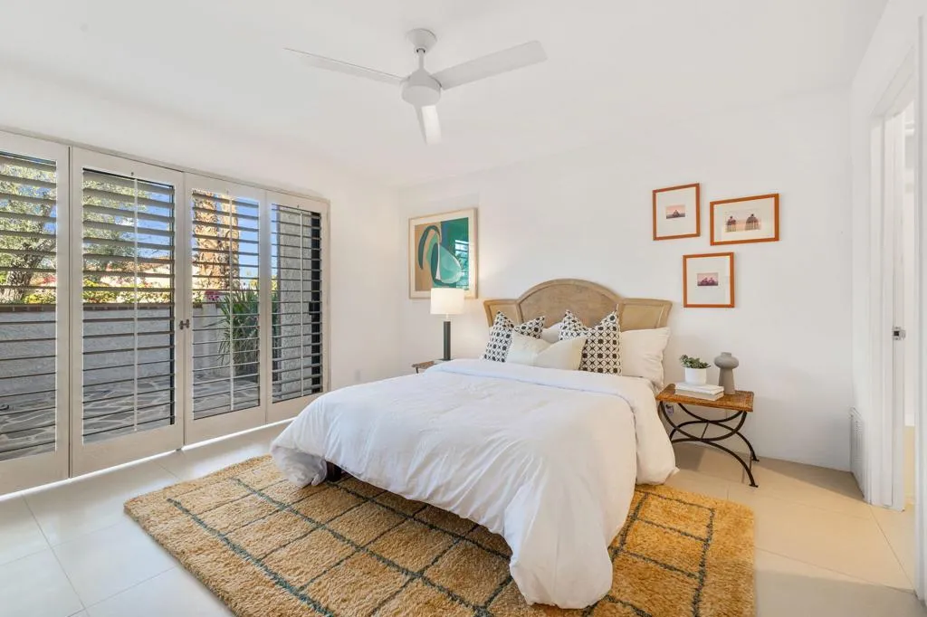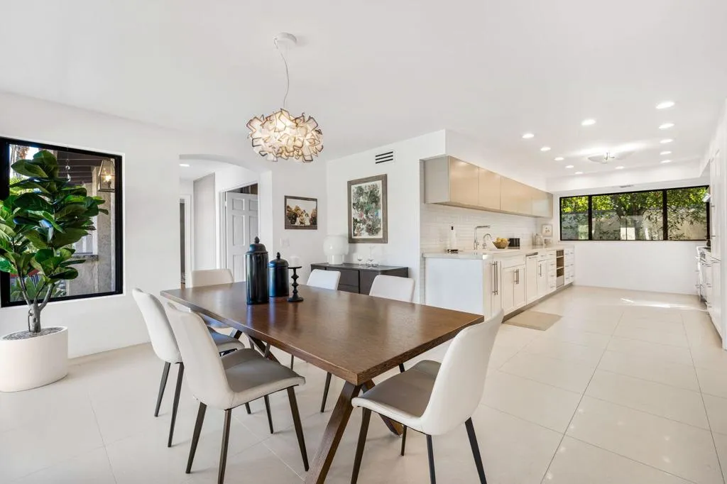 Step into the pinnacle of desert living with this architecturally exquisite solar home in Ironwood Heights at the prestigious Ironwood Country Club, South Palm Desert.This contemporary masterpiece has been fully renovated, offering awe-inspiring panoramic mountain views to the east, south, and west.The residence features three master suites with en-suite bathrooms, which include Heath ceramic tile and high-end fixtures from Zucchetti, Grohe, and Hansgrohe. The primary suite offers a sitting area with a fireplace and stunning morning sun over the western mountains.Designed for elevated entertaining, the custom screening room/library boasts a 100-inch retractable screen, a 4K projector, an onyx fireplace, and a wine bar with a glowing backlit onyx countertop. The well-appointed kitchen features high-end custom cabinets and top-of-the-line appliances by Smeg, Fisher & Paykel, and Bosch. The dining area includes views of the pool and the mountains. Elegant porcelain tile floors are found throughout the residence.Outside, enjoy delightful gatherings with a custom pool, a built-in outdoor kitchen, and an entertainment area featuring a gas fire pit. Designer gates lead to a beautifully landscaped yard featuring native plants and quartzite flagstone. A stone walkway leads to a private sitting area with lovely flowers.The spacious garage accommodates two SUVs and includes a separate area for a golf cart. Ironwood Country Club is a member-owned club featuring two championship 18-hole golf courses, tennis, pickleball, a spa, and extensive social events.
