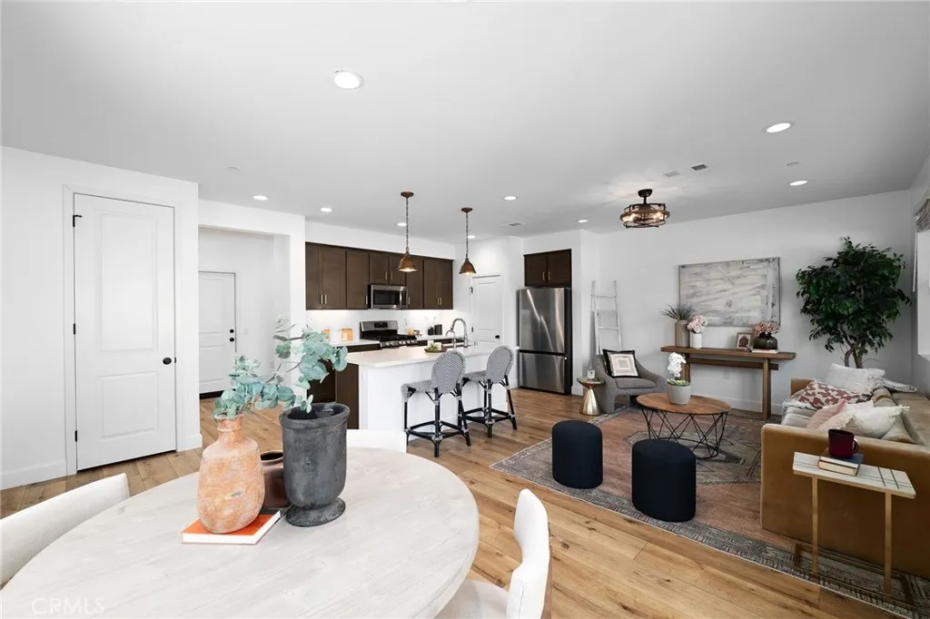 PRICE REDUCED. INCREDIBLE INCENTIVES. MOTIVATED SELLER. Paid-off solar + preferred lender-paid rate buy-down + seller concessions available. Welcome to 39438 Corvina Lane, a premier end-unit residence located in the highly sought-after Sommers Bend community of Temecula—where modern design meets effortless, resort-style living. Built in 2024 and offered under $665,000, this nearly new 4-bedroom, 2.5-bath home presents a rare opportunity to own better-than-new construction—complete with upgrades, included appliances, and immediate move-in availability. From the moment you step inside, you’re greeted by a light-filled, sophisticated interior designed with both style and function in mind. Luxury vinyl plank flooring, fresh designer paint, and upgraded lighting create a warm, elevated aesthetic that feels both modern and timeless. The open-concept layout is thoughtfully designed for today’s lifestyle—seamlessly blending everyday comfort with elevated entertaining. At the heart of the home, the chef-inspired kitchen features sleek cabinetry, contemporary finishes, and a full suite of included appliances, making this home truly turnkey from day one. As a premium end-unit, the home offers enhanced privacy, additional natural light, and a more open, airy feel—an increasingly rare and desirable feature. Combined with paid-off solar, this home delivers both luxury and long-term efficiency. Step outside your door and experience everything Sommers Bend is known for—resort-style pools and spa, a state-of-the-art fitness center, clubhouse, sports courts, playgrounds, scenic walking trails, and beautifully designed gathering spaces that create a true sense of community. Ideally located just minutes from top-rated schools, Temecula Wine Country, shopping, dining, and freeway access, this home offers the perfect balance of convenience, lifestyle, and location. With a motivated seller, seller-paid concessions, and preferred lender incentives including a rate buy-down, this is an exceptional opportunity to secure a high-quality home with immediate value. This is more than a home—it’s a lifestyle. Welcome to Sommers Bend.