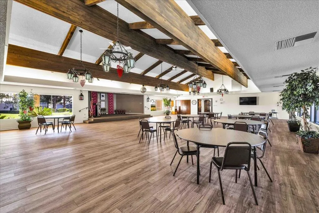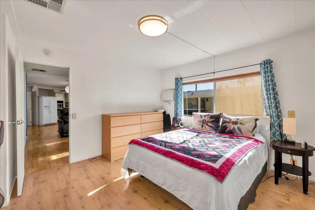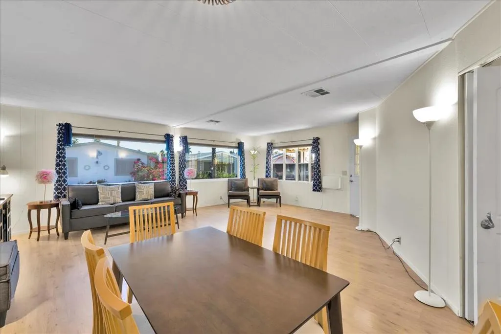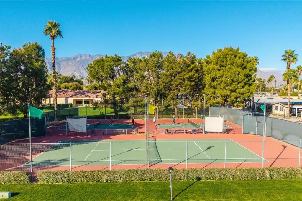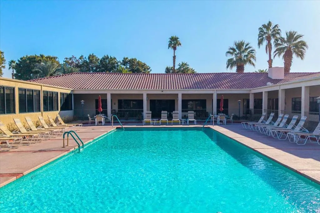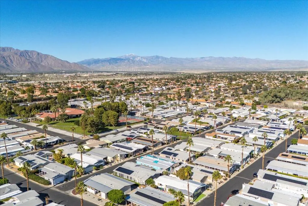 The Canyon is a gated 55+ community offering a secure & peaceful setting for comfortable year-round living. This well-maintained home features an efficient floor plan w/abundant built-in storage & updated finishes throughout. Central A/C runs efficiently, supported by additional wall units for cost-effective cooling. Recent upgrades include updated drawer & door pulls, satin nickel hinges and doorknobs, dimmer switches in the living area, & water shut-off valves throughout. All exterior doors are keyed alike for convenience. Window coverings include honeycomb Roman shades & blue-and-white Moroccan curtains w/liner panels. Dual-pane front picture windows & south-facing sliding windows were replaced in March 2026. Vinyl flooring runs throughout the main living areas, with Pergo laminate flooring in the primary bath. The open-concept living & dining area features warm butter-yellow walls, an artful ceiling light fixture, built-in cabinetry, & a coat closet. The circular kitchen offers a full suite of white appliances, closet pantry, butcher block countertops, double-well sink, water filtration system, & newer garbage disposal. The laundry room includes a newer washer, matching dryer, porcelain utility sink with butcher block counter, & freshly painted cabinetry. The den features textured white walls & a versatile floor-to-ceiling nook, plus a whole-home evaporative cooler. The primary bedroom offers refreshed walls, a new dual-pane sliding window, restored built-in drawers, and ample closet space. The remodeled primary bath includes reinforced sub-floor, Pergo flooring, a comfort-height toilet, corner shower, refurbished medicine cabinets, updated lighting, & matching vanities w/storage. Additional features include a large attached shed with electricity and two outdoor utility closets, including a 2023 Bradford-White water heater. The Canyon is centrally located in the Valley and has easy Freeway access on Gene Autry Trail or Date Palm Dr. near shopping, entertainment, PS Int'l Airport and 10-12 Min. to Downtown Palm Springs! The Canyon features only Full-Time Residence or Second Homes. Enjoy park like greenbelt grounds with Tennis & Pickleball. The clubhouse boasts an upgraded Banquet Hall, Gym, Card Room and Library along w/4 Shuffleboard Lanes, Two pools & a Spa. You will need to qualify as a resident w/3 times space rent $950 = $2850 along w/a FICO score of 750. Space rent includes water & trash. 1 domestic animal allowed of 20 lbs unless service animal