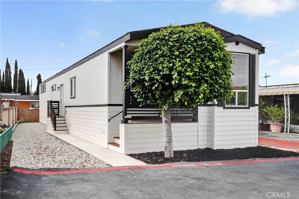 Brand-new manufactured home features 2 bedrooms and 2 bathrooms and is situated in an all-age community. The home includes a 7-year manufacturer warranty, providing added peace of mind for the buyer. The exterior offers an attractive design with a front porch. Inside, the home features an open floor plan, high ceilings, and a modern kitchen equipped with stainless steel appliances. The layout provides a functional and comfortable living space. Golden State Mobile Lodge is a well-maintained community offering amenities such as a pool, clubhouse, and on-site laundry facilities.