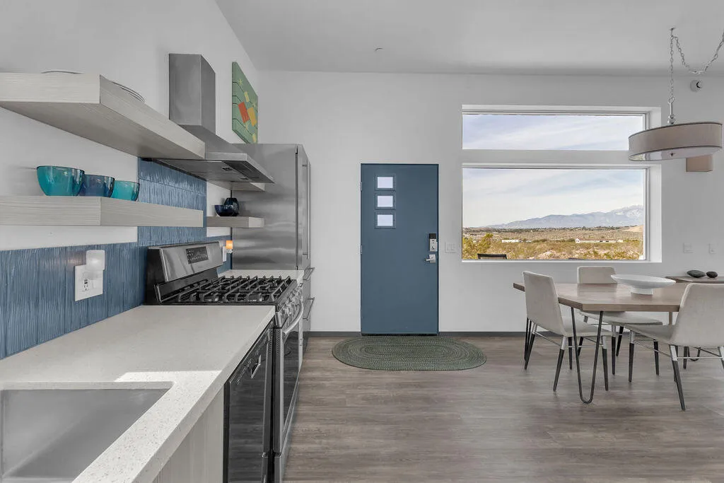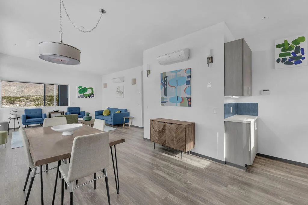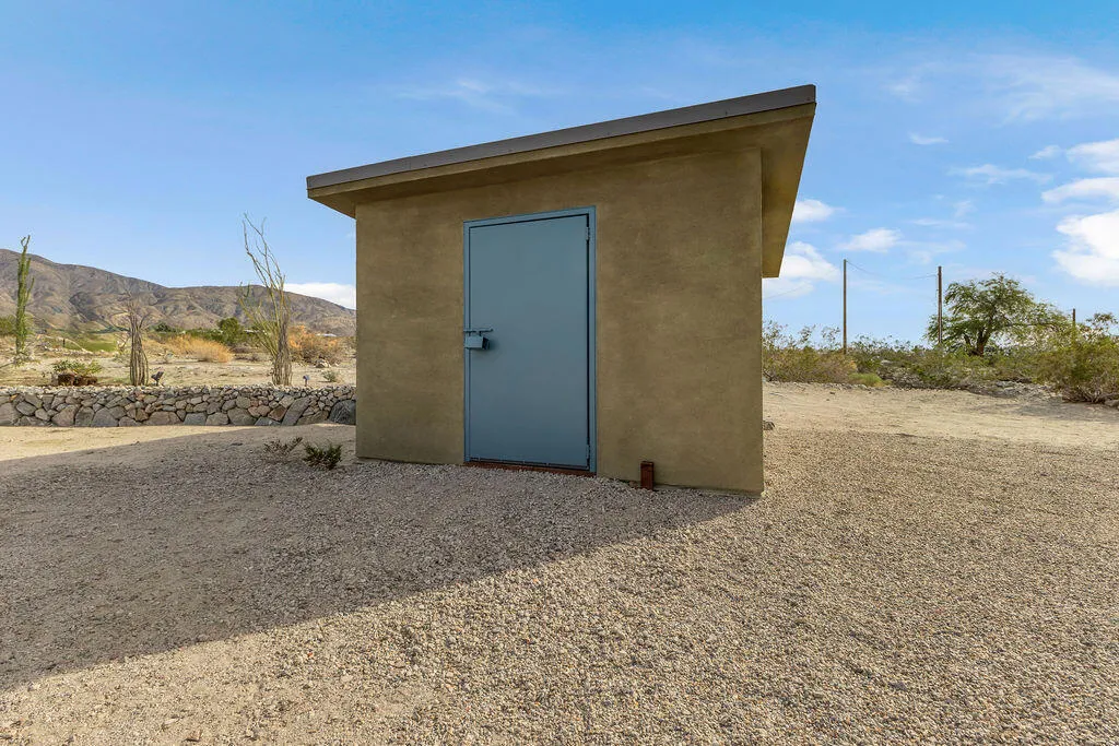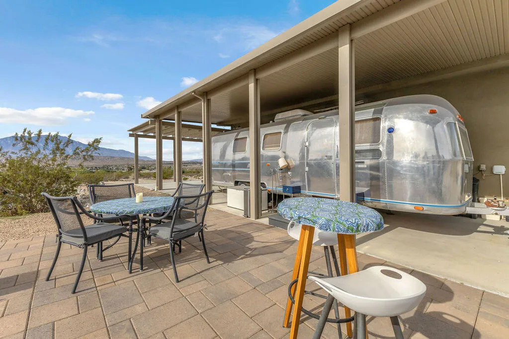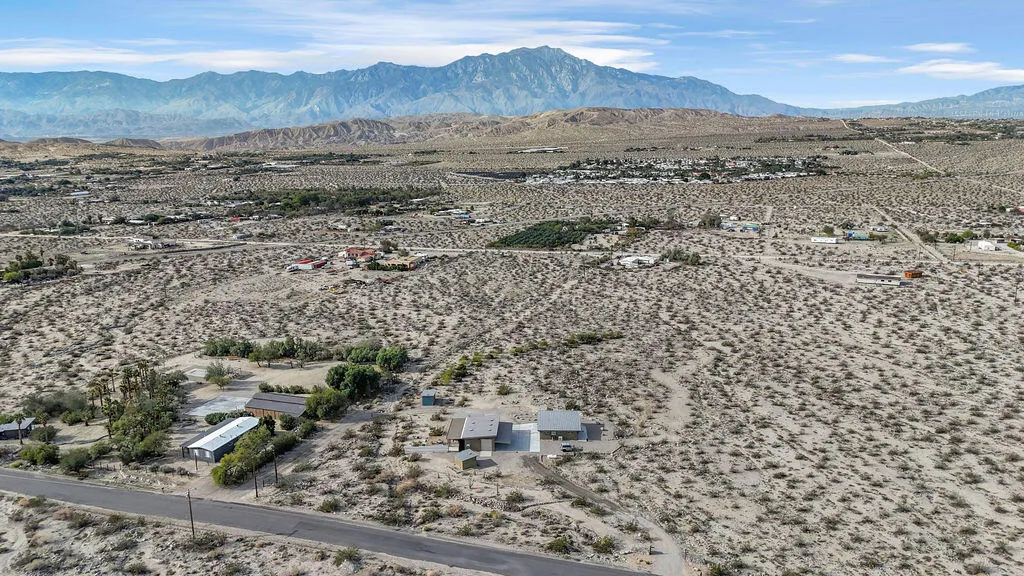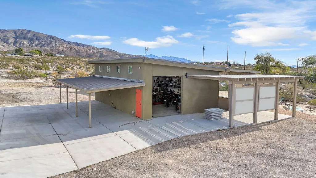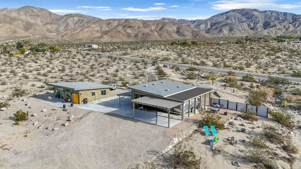 Desert Stone, Modern Desert Living with privacy and versatility in Sky Valley. This architecturally striking modern home sits on a 4.74-acre parcel with expansive desert and mountain views. The open floor plan features large windows, abundant natural light, high-end materials, and designer finishes throughout. No photo can capture the true beauty or feeling of this home, it must be seen in person to be fully appreciated. The property includes a fully enclosed oversized RV/toy garage for secure storage, a covered carport, and a plumbed Airstream ready for guest use or potential rental income (buyer to verify). Low-maintenance desert landscaping provides beauty with minimal upkeep, ideal for full-time living, a weekend retreat, or an investment opportunity. Modern utility upgrades enhance comfort and efficiency. Located in a desirable, private area with room to expand. This land is thoughtfully designed with mature landscaping and irrigation. The neighboring 4.74-acre parcel is also available for purchase, offering the opportunity to create a nearly 10-acre compound. A rare blend of modern design, open space, privacy, and flexible use.
