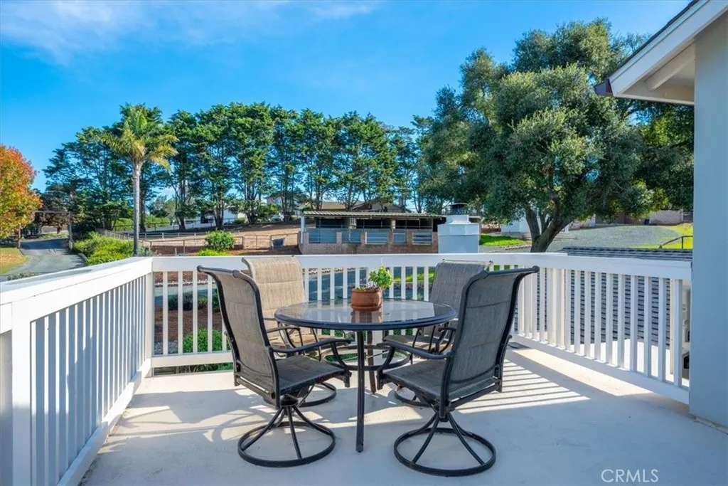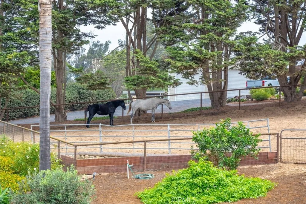 Welcome to 1093 Camino Caballo - an exceptional Central Coast property where modern comfort meets the freedom of wide-open space. Set on 2.3 beautifully landscaped acres, this fully remodeled 4-bedroom, 3-bathroom home offers flexibility for a variety of lifestyles. Whether you're looking for room to spread out, space to entertain, or the option to keep animals, this property delivers. Following a comprehensive 2022 renovation, the home features a new roof, all-new windows and doors, plantation shutters, and refined wainscoting throughout. High-quality, low-emission materials were thoughtfully selected to create a stylish and comfortable living environment. The main level includes a bedroom and full bath, offering versatility for guests, workspace, or extended living needs. Two gas fireplaces add warmth and character to the bright, updated interior while maintaining the home’s classic ranch-style charm. Upstairs, the spacious primary suite features a beautifully appointed bathroom with a soaking tub and a generous walk-in closet. All three upstairs bedrooms open directly onto a large deck through glass sliders, creating a seamless connection to the surrounding landscape. Step outside from the kitchen to a private outdoor retreat, where a covered patio overlooks a lush lawn framed by mature trees—ideal for gatherings, recreation, or simply enjoying the peaceful setting. The grounds offer usable acreage with established improvements including stalls, corrals, and an arena, providing options for animals, hobbies, or additional outdoor use. A circular driveway accommodates larger vehicles or trailers, and multiple outbuildings provide ample storage. A concrete wash pad with water hookups adds everyday convenience. Turnkey and thoughtfully upgraded, this property offers a rare blend of modern living, open space, and versatility—just minutes from the best of the Central Coast.