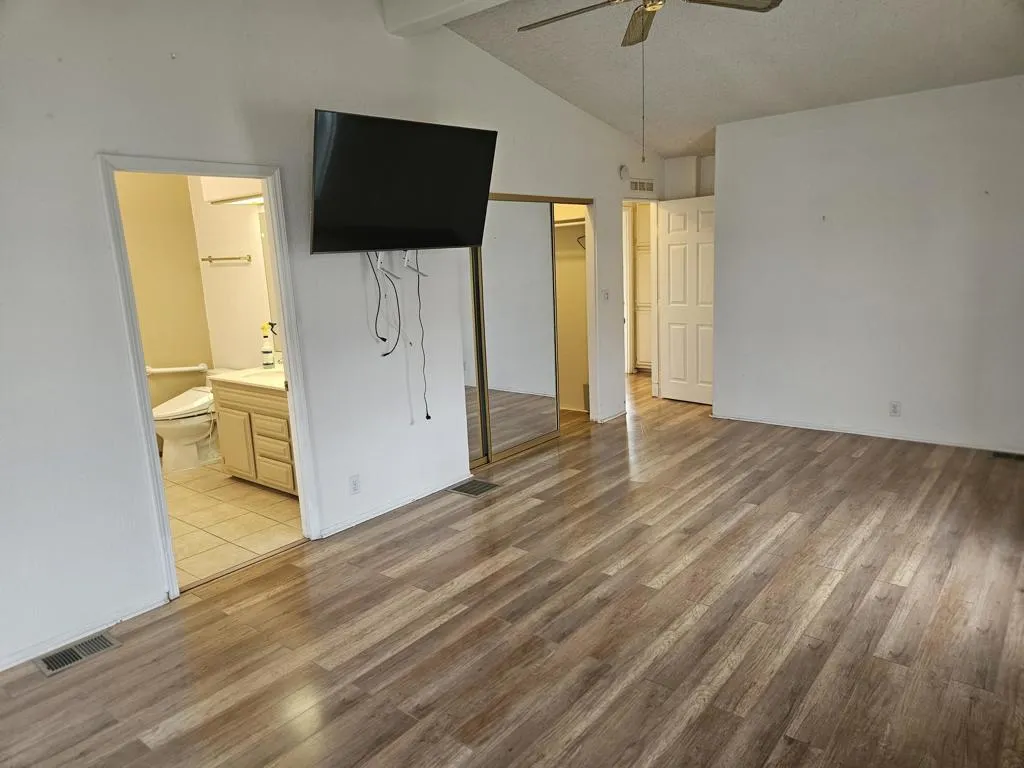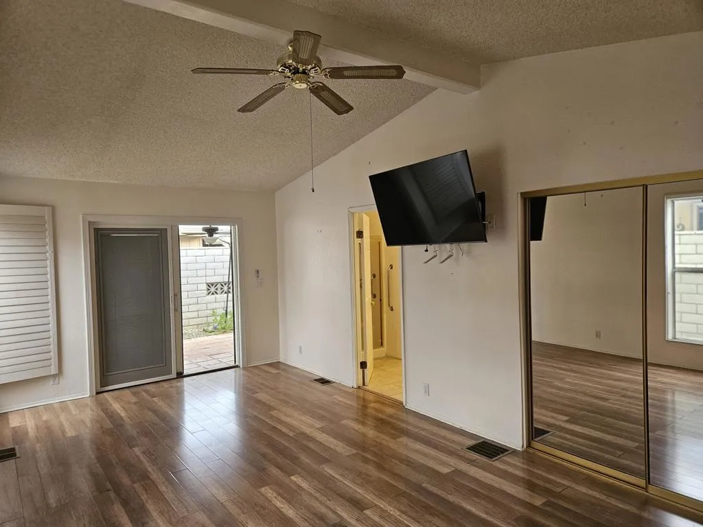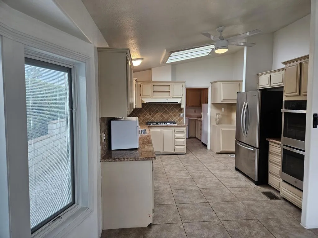 Owner will pay up to $1500 toward closing costs!!Spacious 2BR + Office, Home with rare 2 car, plus tandem golf cart access garage in Palm Desert Greens - You Own the Land! Welcome to this impressively spacious manufactured home in the sought-after 55+ community of Palm Desert Greens Country Club. Offering 1,920 square feet of comfortable desert living, this home is a rare find with features not often seen in the complex--including an attached 2-car garage with a double-sided golf cart door that opens to the patio. Inside, you will find 2 generously sized bedrooms, 2 full bathrooms, and a versatile home office that functions perfectly as a den, craft room, study, or guest space. Laminate flooring in the main living areas enhances the open-concept layout, while the kitchen and bathrooms feature easy-care tile. A built-in hutch adds charm and additional storage. Windows throughout have Double-Paned Glass with most blinds between the glass. The kitchen comes fully equipped with a new 5 burner cooktop, new double oven, and dishwasher.The primary and guest bedrooms include mounted TVs--move-in ready for your convenience! 6 ceiling fans throughout the home help keep it cool and comfortable year-round. Enjoy seamless indoor-outdoor living with covered patio access from both the living room and primary bedroom sliders--ideal for morning coffee or evening relaxation. There is an abundance of built-in storage, closets and cabinets throughout the home. The HOA fee of just $400/month, which delivers incredible value to include Spectrum cable, high-speed internet, trash service, and unlimited golf on the community's private course. You also have access to tennis and pickleball courts, 24-hour manned gated security, a clubhouse with a restaurant, and 22 active social clubs. For families, there's a kiddie park and pool, perfect for visiting little ones.This home offers the perfect blend of spacious living, privacy, and resort-style amenities, all in one of Palm Desert's most vibrant 55+ communities. Don't miss out on this rare opportunity to enjoy a truly exceptional lifestyle.