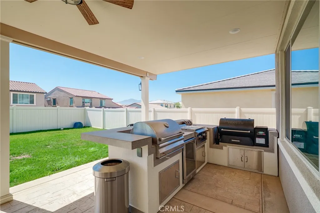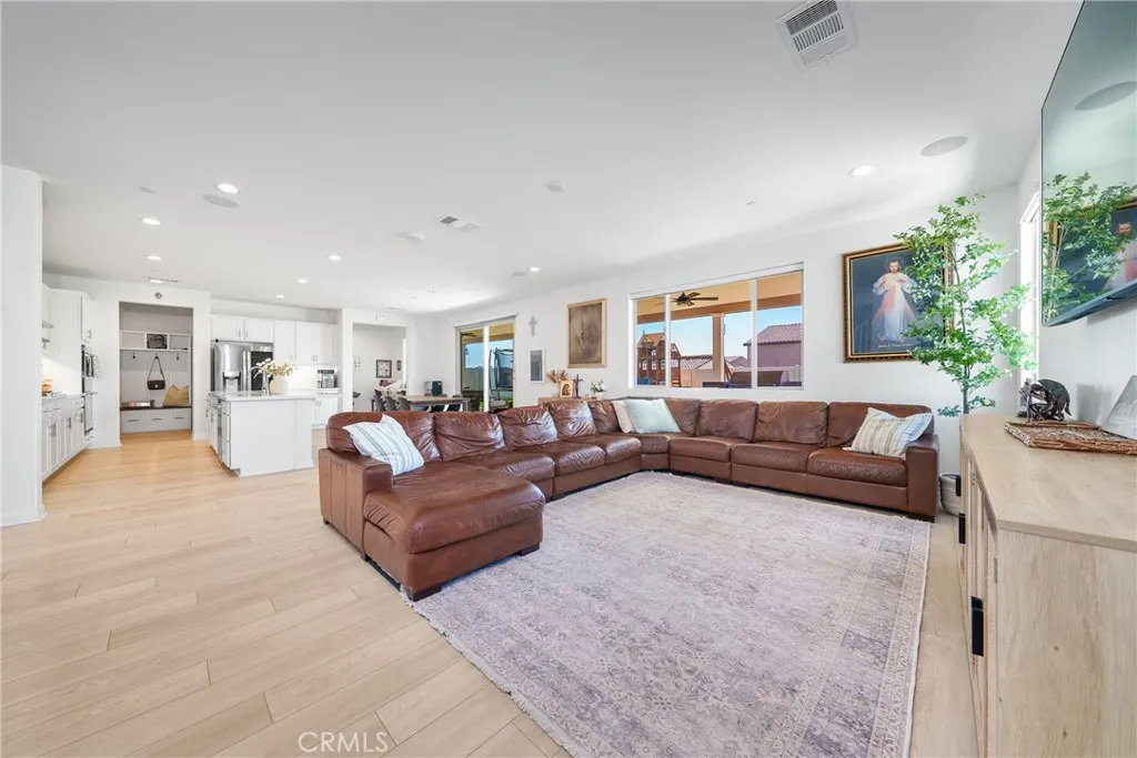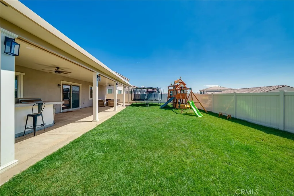 Gorgeous home in Highland Grove gated community. Situated on a single-loaded street, this upgraded 3,699 sqft home offers 6-beds 4-baths with plenty space and ample natural light. Inside, you'll find modern upgrades throughout, including top-of-the-line appliances, upgraded cabinets, Quartz counter tops, luxury vinyl plank flooring on the first floor, surround sound system, Wi-Fi extender, SMART home features, etc. The current owner invested over 150K in various tasteful upgrades, from motorized blinds, recent interior painting, custom Murphy closet in office, fully upgraded garage with epoxy floor and custom cabinets, custom closet in master bath, to the fully built out backyard with covered patio, BBQ Island, stamped concrete in patio area, and backyard playground set and a lot more. The large 3-car garage offers ample space for vehicles, storage, even an indoor gym with high end equipment. List of all upgrades will be provided to the interested buyers upon inquiry. This home perfectly balances style, comfort, and convenience for luxury and eco-friendly living. The community features attractive amenities of private gated entrances, regional trail, pool and spa, BBQ area, shade structures, children’s play area, and turf area. Just minutes from the 91 & 15 Fwy with ample shopping & restaurants. Motivated seller and submit your offer to make this beautiful property your new home.