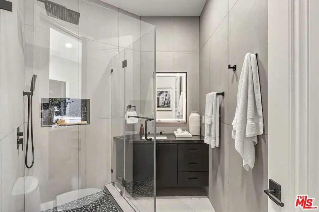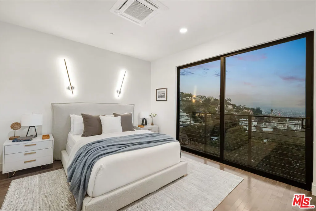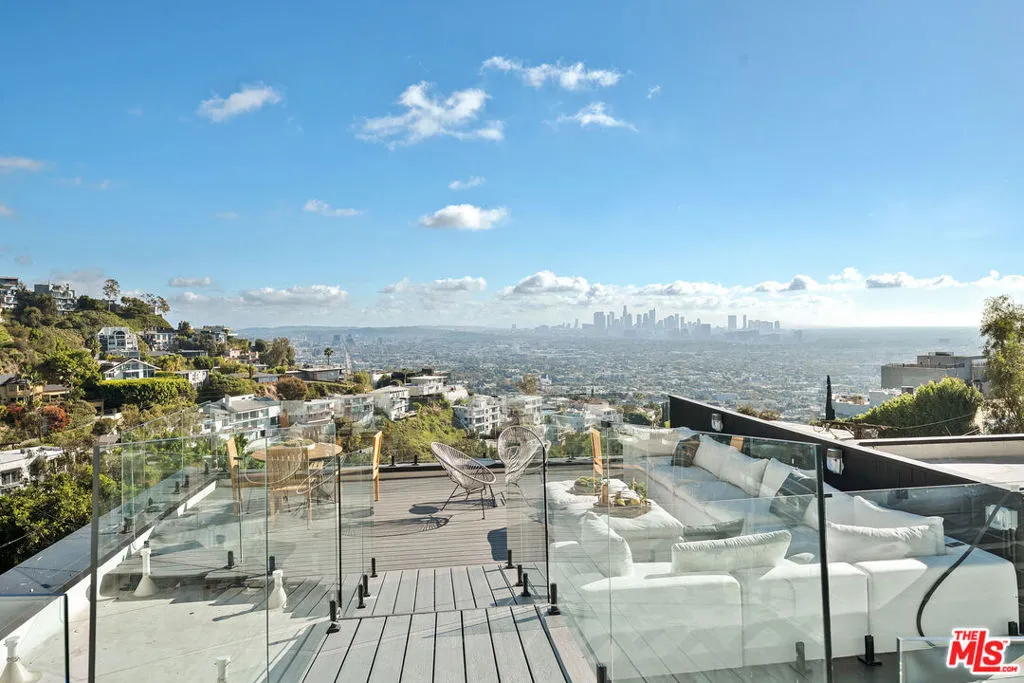 Discover the ultimate in contemporary Los Angeles luxury in this new construction home, completed in 2025 and situated in a prime Sunset Strip location favored by celebrities. This stunning residence seamlessly blends modern sophistication with unparalleled comfort, offering an exceptional lifestyle opportunity along with breathtaking city views. This brand new home, which has never been lived in, provides approximately 3,371 square feet of thoughtfully designed living space featuring 3 bedrooms and 3.5 bathrooms, characterized by luxury and innovation throughout. The entry level features a 3-car garage with epoxy floors and WiFi-enabled openers, along with a customizable spare room perfect for a home office, gym, or wellness area. Designed for seamless entertaining, the residence includes a private guest suite with a dedicated home theater and a sophisticated custom bar accented by stunning back-lit Cristalo stone. The heart of the home showcases breathtaking views and features a gourmet kitchen equipped with all-new Thermidor appliances, complemented by a dramatic custom back-lit Cristalo stone island and a convenient walk-in pantry with a built-in wine rack.Maple wood flooring and linear LED ceiling lights create a bright, airy ambiance, extending out to a sprawling patio with captivating Los Angeles skyline views. The private retreat levels offer a primary suite with unobstructed views of Downtown LA and a spa-like bath featuring a soaking tub, a walk-in shower with wall jets, a switchable privacy window, and a custom automatic toilet/bidet. An additional bedroom with a private bath and panoramic views, along with a well-placed laundry room, completes the upper-level sanctuary. The rooftop is designed for ultimate relaxation and entertaining, boasting a stunning patio and garden area anchored by a fully built-out in-ground heated spa. Throughout the residence, every detail has been elevated, including WiFi smart switches, recessed lighting, and back-lit mirrors in all restrooms. Outdoor luxury is extended with Bluetooth speakers at the balcony and Romeo/Juliet balconies on multiple levels. This prime location offers easy access to top restaurants and attractions in West Hollywood and Beverly Hills, making it the perfect turnkey retreat.