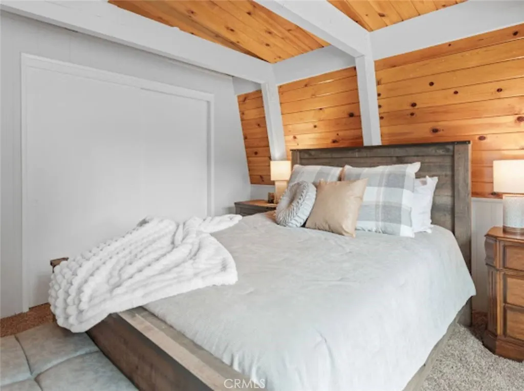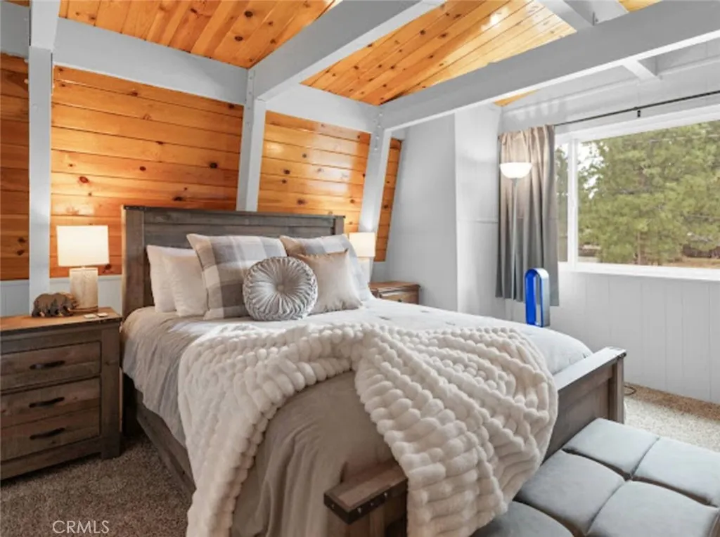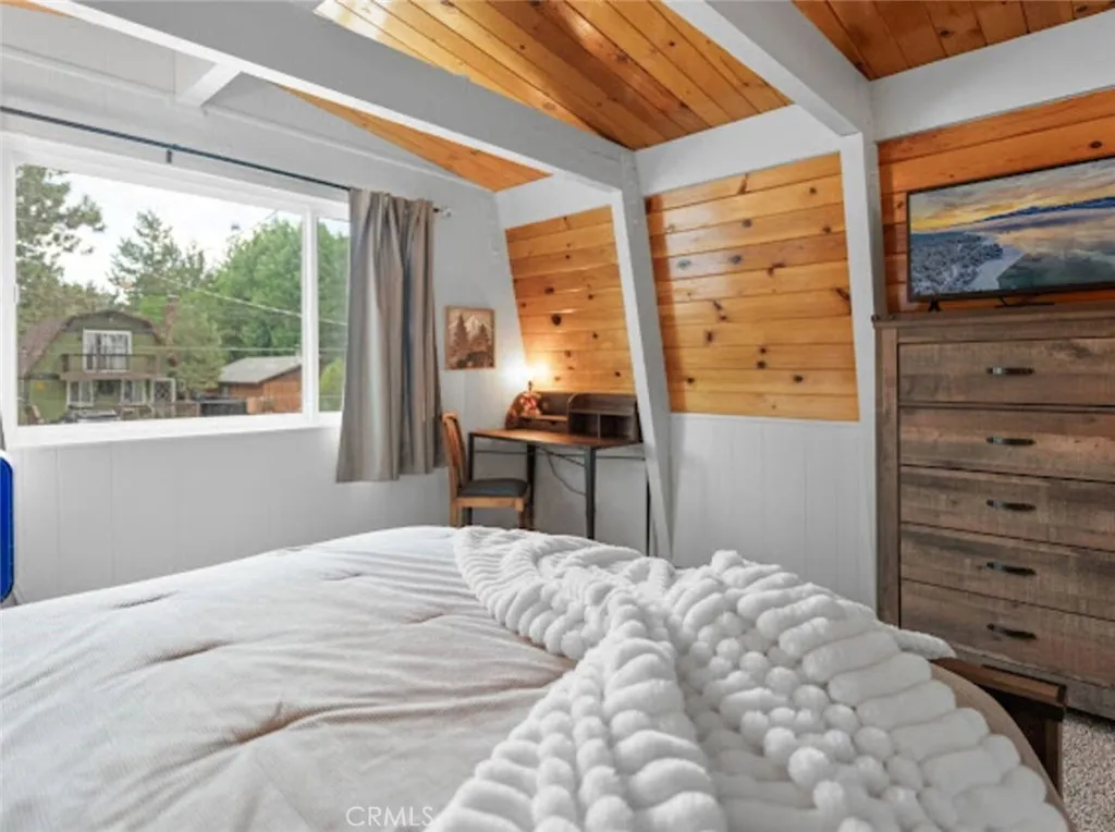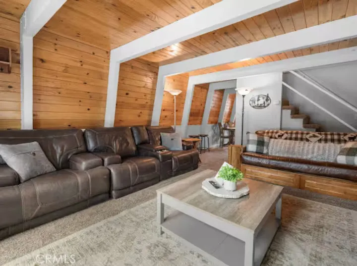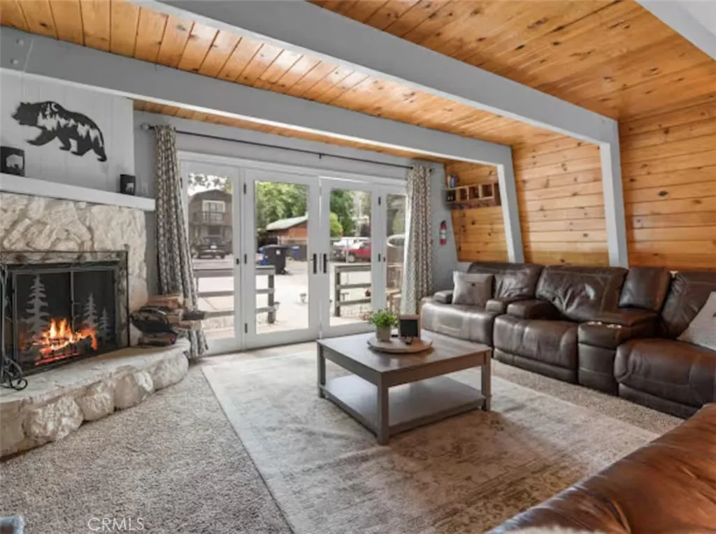 SELLER IS MOTIVATED! Rent to own option available. Welcome to this warm Gambrel home nestled in the very popular Peter Pan area of Big Bear City. This 2 bedroom, 1 bathroom home features a perfect blend of comfort and style. With natural light, beamed T&G ceilings, topped off with a cozy wood-burning fireplace that creates a warm in the woods cabin desired feel. Enjoy the large welcoming living room that is completed with a wood burning fireplace. Kitchen comes with stainless stain appliances, plenty of cabinet space for storage and ample amount of counter space. Sit back and relax on the wooden deck in the sizable backyard. Perfect for those mid day summer barbeques. The home is minutes away from the lake and downtown big bear. This is a perfect get away for the family or a great investment for an investor who would like to Airbnb it.