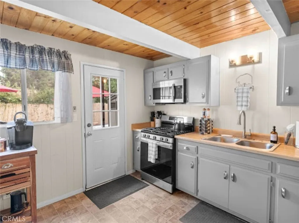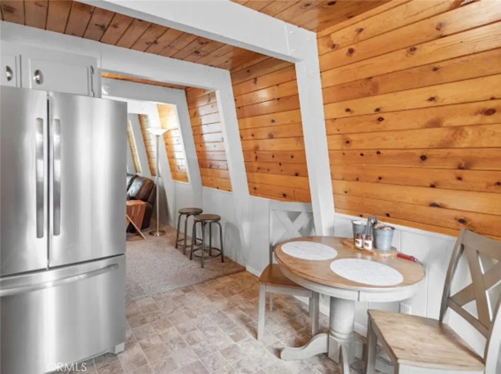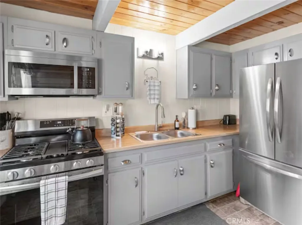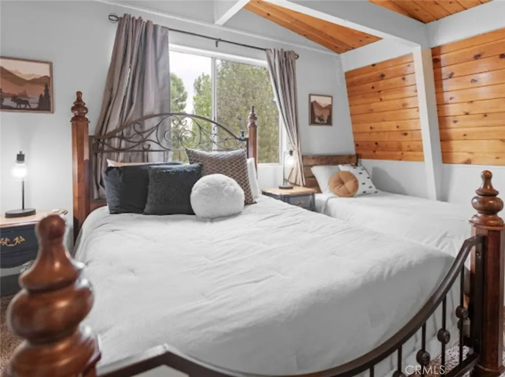 SELLER IS MOTIVATED! Rent to own option available. Welcome to this warm Gambrel home nestled in the very popular Peter Pan area of Big Bear City. This 2 bedroom, 1 bathroom home features a perfect blend of comfort and style. With natural light, beamed T&G ceilings, topped off with a cozy wood-burning fireplace that creates a warm in the woods cabin desired feel. Enjoy the large welcoming living room that is completed with a wood burning fireplace. Kitchen comes with stainless stain appliances, plenty of cabinet space for storage and ample amount of counter space. Sit back and relax on the wooden deck in the sizable backyard. Perfect for those mid day summer barbeques. The home is minutes away from the lake and downtown big bear. This is a perfect get away for the family or a great investment for an investor who would like to Airbnb it.