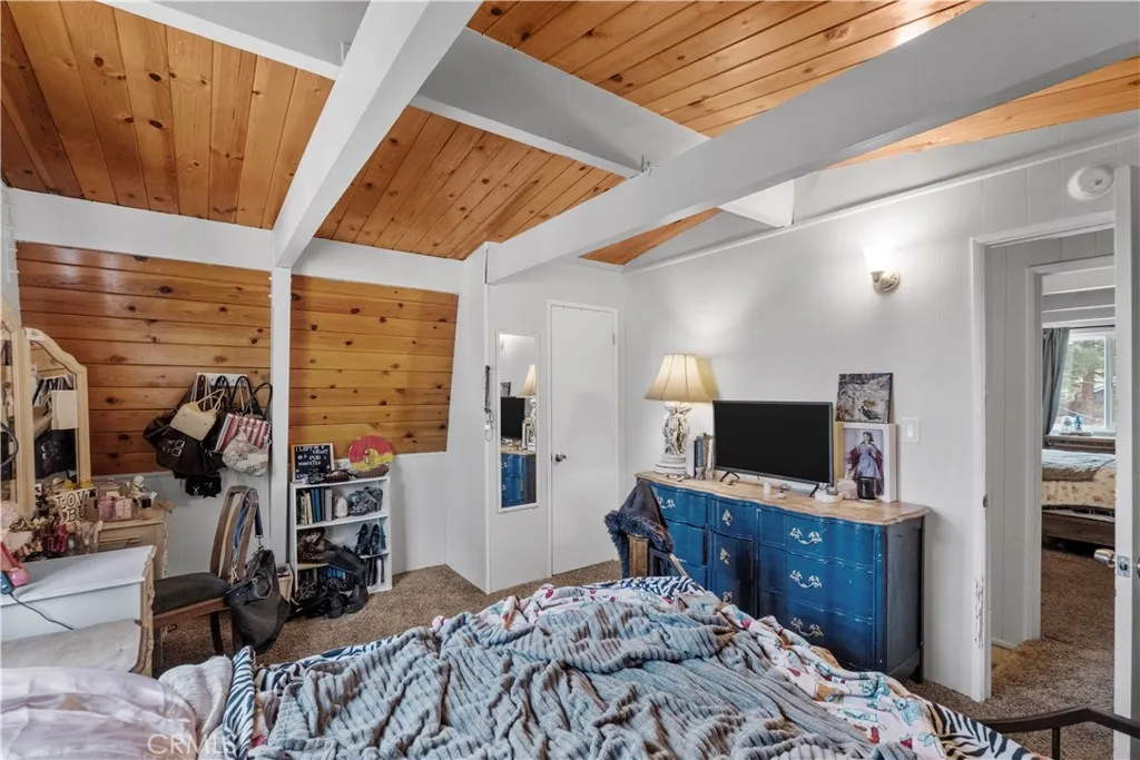 SELLER IS MOTIVATED! Welcome to this warm Gambrel home nestled in the very popular Peter Pan area of Big Bear City. This 2 bedroom, 1 bathroom home features a perfect blend of comfort and style. With natural light, beamed T&G ceilings, topped off with a cozy wood-burning fireplace that creates a warm in the woods cabin desired feel. Enjoy the large welcoming living room that is completed with a wood burning fireplace. Kitchen comes with stainless stain appliances, plenty of cabinet space for storage and ample amount of counter space. Sit back and relax on the wooden deck in the sizable backyard. Perfect for those mid day summer barbeques. The home is minutes away from the lake and downtown big bear. This is a perfect get away for the family or a great investment for an investor who would like to Airbnb it.