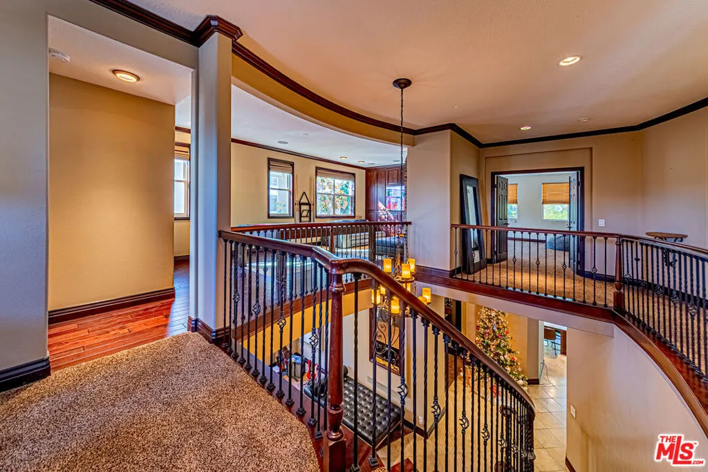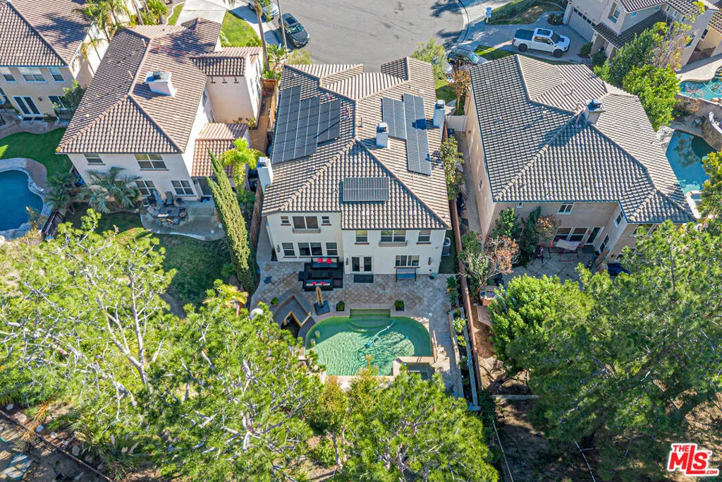 Live the Dream in this prestigious, turnkey model home featuring 5 bedrooms, 4 bathrooms, and a 3-car garage, ideally situated on a quiet cul-de-sac in a highly sought-after, family-friendly neighborhood of Serrano Heights. From the moment you enter, the grand wood-and-iron staircase sets the tone for refined luxury and thoughtful design throughout. Every detail has been carefully curated to deliver both comfort and timeless style. Designed for exceptional living and entertaining, the chef's kitchen boasts granite countertops, stainless steel appliances, and an expansive walk-in pantry. Host memorable gatherings in the formal dining room or unwind in the formal living room highlighted by a stunning fireplace. The spacious family room offers a warm, inviting atmosphere perfect for cozy evenings by the fire. The luxurious primary suite is a true retreat, showcasing a spa-inspired bathroom with a large tiled walk-in shower, freestanding soaking tub, dual granite vanities, and a dedicated sitting vanity. Completing the suite is an impressive cedar-lined walk-in closet with custom built-in organizers an elevated touch found in Orange County's finest homes. The second level features a built-in office nook, a large laundry room with custom cabinetry, and a one-of-a-kind media/game room with its own fireplace, ideal for entertaining or relaxing. Step outside to a private, resort-style backyard that rivals the home's stunning interior. Enjoy the custom saltwater pool with a dramatic waterfall, a swim-up bar, and a fully equipped outdoor kitchen perfect for hosting unforgettable gatherings. High-end security systems ensure peace of mind, privacy, and comfort. This exceptional residence offers the perfect blend of luxury, functionality, and resort-style living.