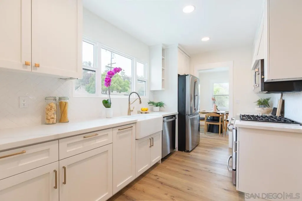 Completely remodeled 4-bedroom, 3-bathroom home nestled on a spacious 6,000ft2 corner lot in one of La Mesa’s most quaint neighborhoods adjacent to Rolando Park . Perfectly blending contemporary finishes with timeless charm, this home offers an open layout, exceptional upgrades and over 1,800ft2 of interior space. Custom cabinetry, central air, plenty of storage and private primary wing with walk-in closet and lots of light. The brand new kitchen boasts premium appliances, walk-in pantry and large farmhouse sink. Oversized two car garage comes with built-in storage and new washer and dryer. The large lot offers abundant parking; approx. 6 car spots or room for a boat or RV parking.